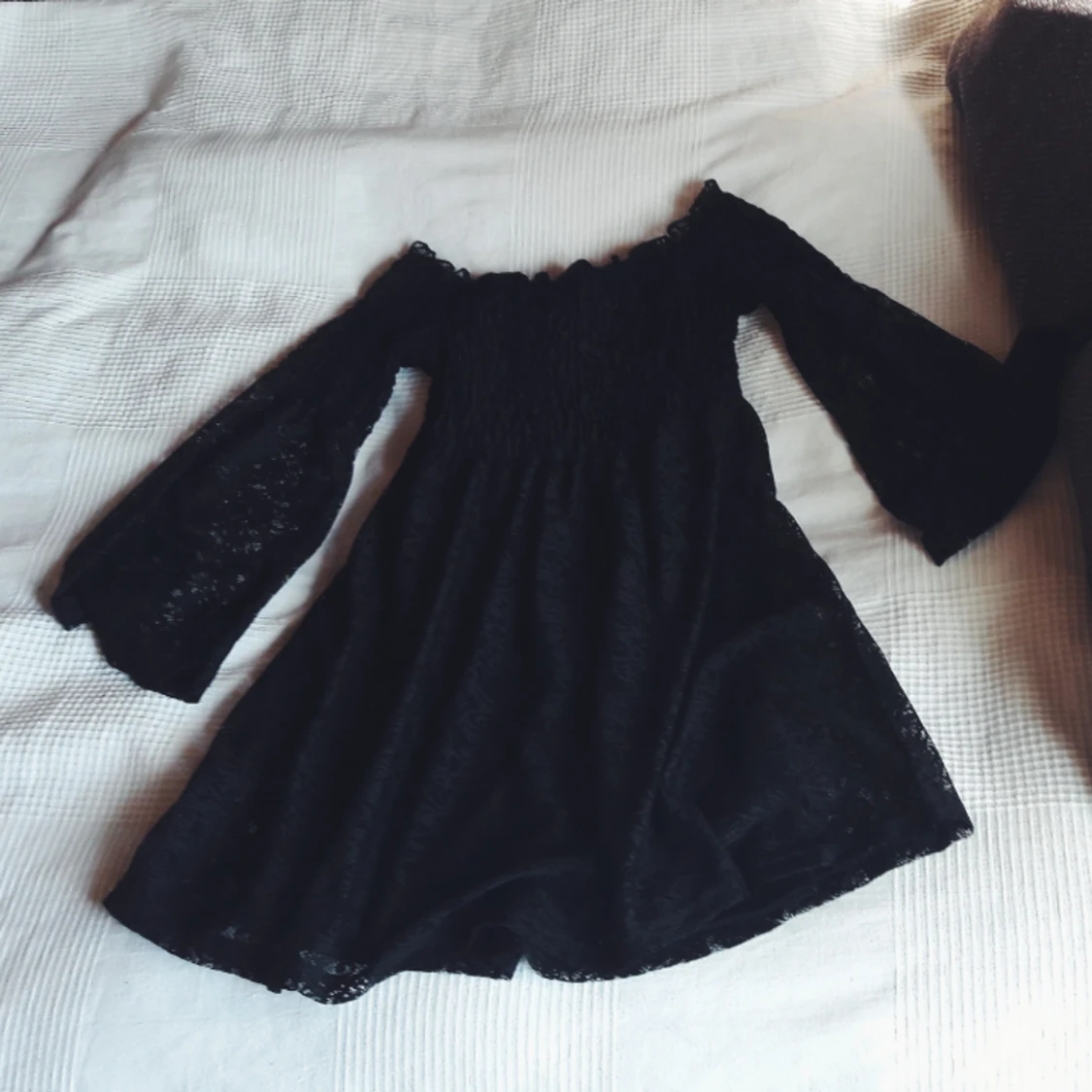 Helt oanvänd fin offshoulder klänning i spets från Asos. Kostade ca. 400 ny. Stretchig och fin mem inte min stil. 200kr med frakt.