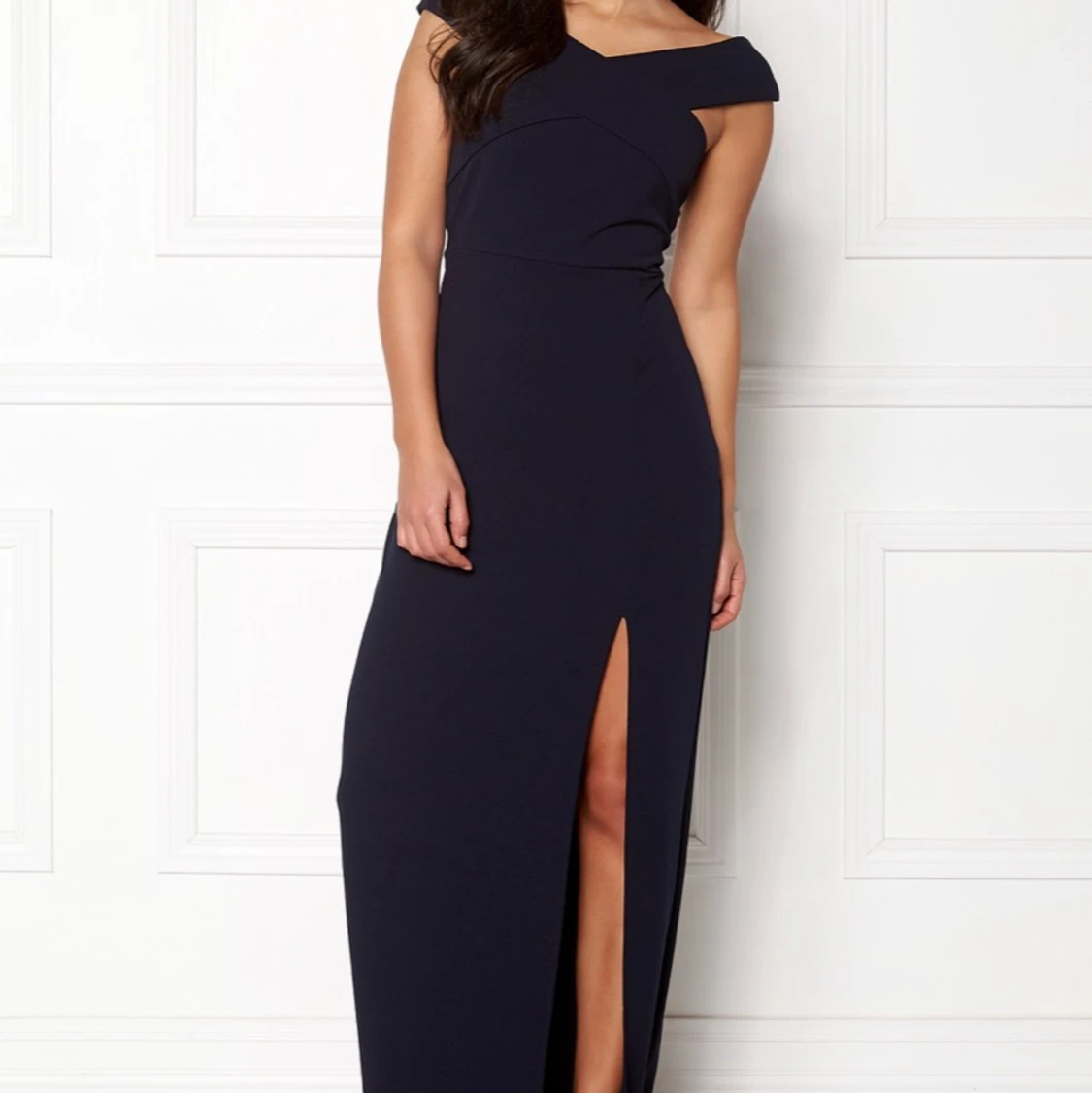 Svart långklänning från ax paris, storlek 36 (S). Off shoulder med slits, mycket fint skick och endast använd en gång!