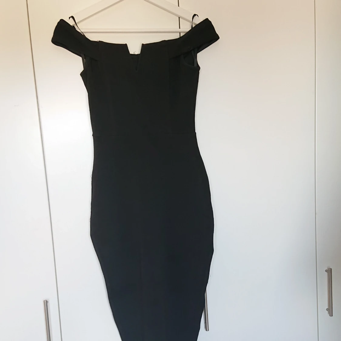 Svart, tajt bardotklänning ifrån nelly. Aldrig använd. Knälång. Finns att hämta i Göteborg eller skickad emot frakt.