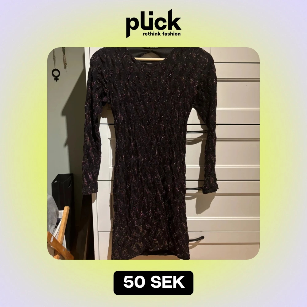 Snygg svart klänning guldglittrigt mönster och öppen rygg från Zara. Köpt vintage men är inte riktigt min stil så säljer den utan att jag använt den <3 tight passform. Perfekt nyårsklänning!!