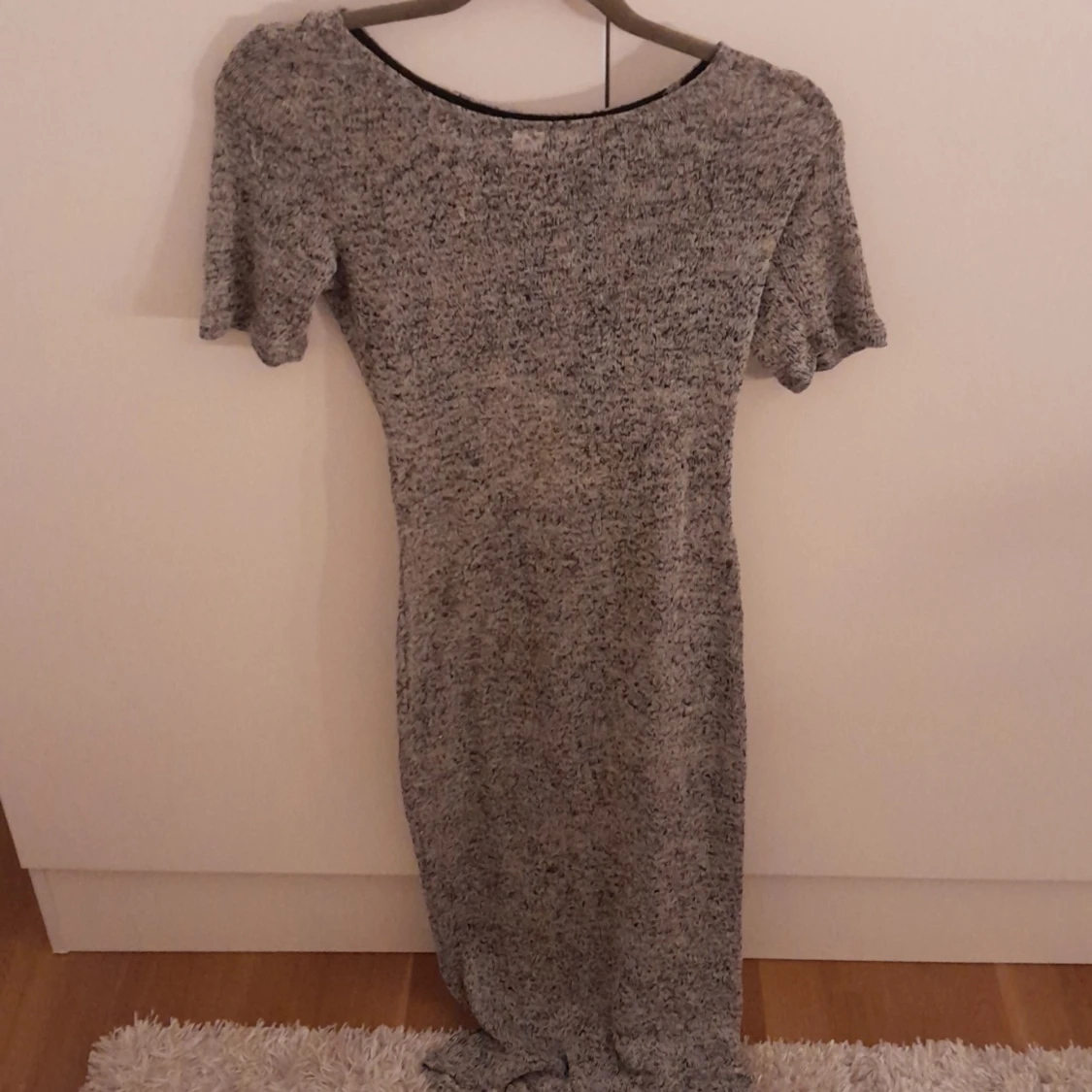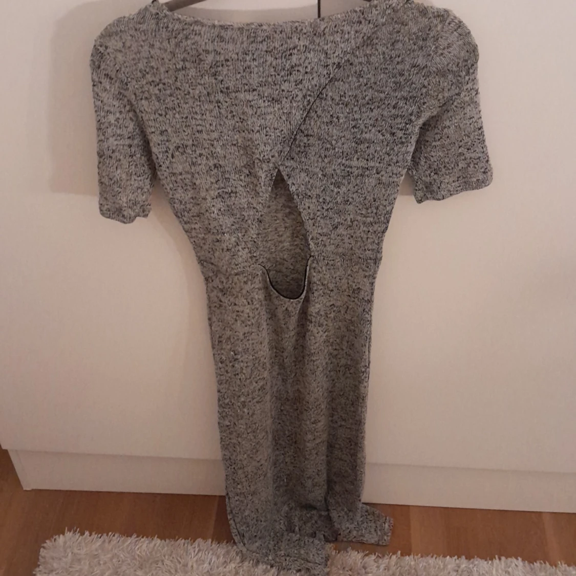 Grå lång klänning som sitter bra på kroppen med hål i ryggen, dock är den väldigt genomskinlig, bra skick
