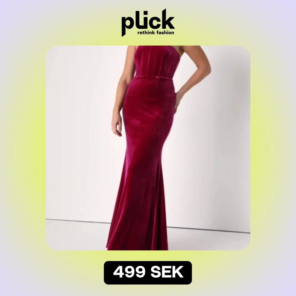 Klänning med korsett från Lulus i mörkröd sammet, lite åt det rosa hållet. Super stretchigt framförallt över mage och höfter, även korsetten sitter väldigt bekvämt. Faller fint tack vare det tunga tyget. Tycker personligen att den kan upplevas lite stor i storleken pga stretchen. Går även att använda som gravid. Perfekt för gäster på vinterbröllop! Använd endast en gång och i super bra skick.