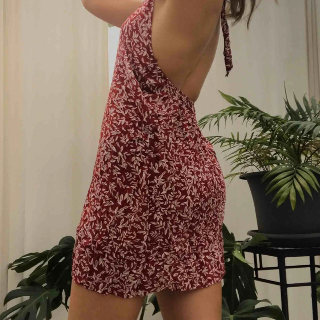 Söt sommarklänning köpt i Grekland. Halterneck med band du knyter själv och låg rygg. Supertunt material, väldig skön i värme. Köpt för: 75€. Möts upp i Malmö, annars står köpare för frakt💫