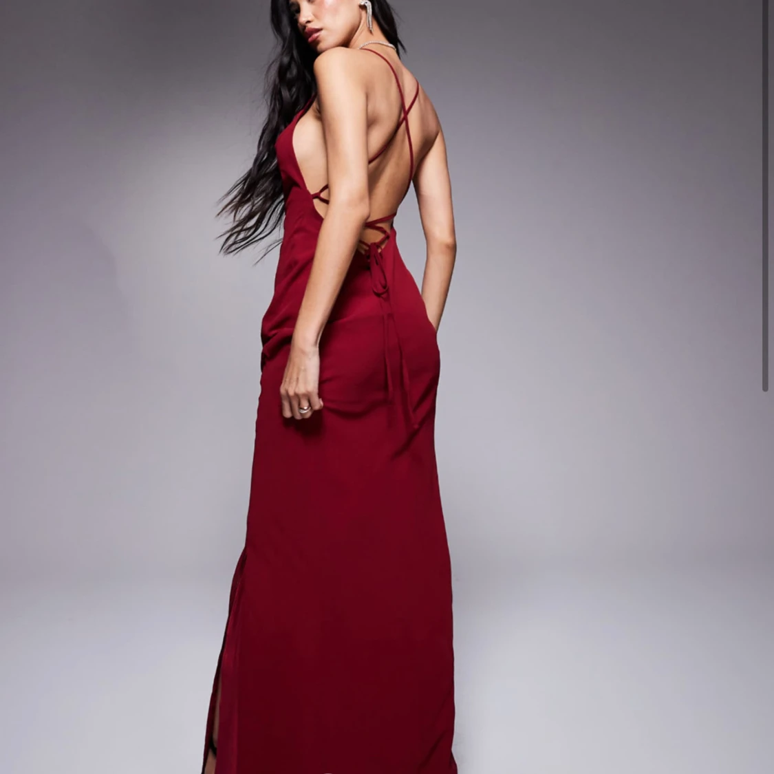 En jättefin vinröd klänning med öppen rygg från Asos. Passar perfekt till balen! Storlek 34 och helt oanvänd. Nypris 639kr.