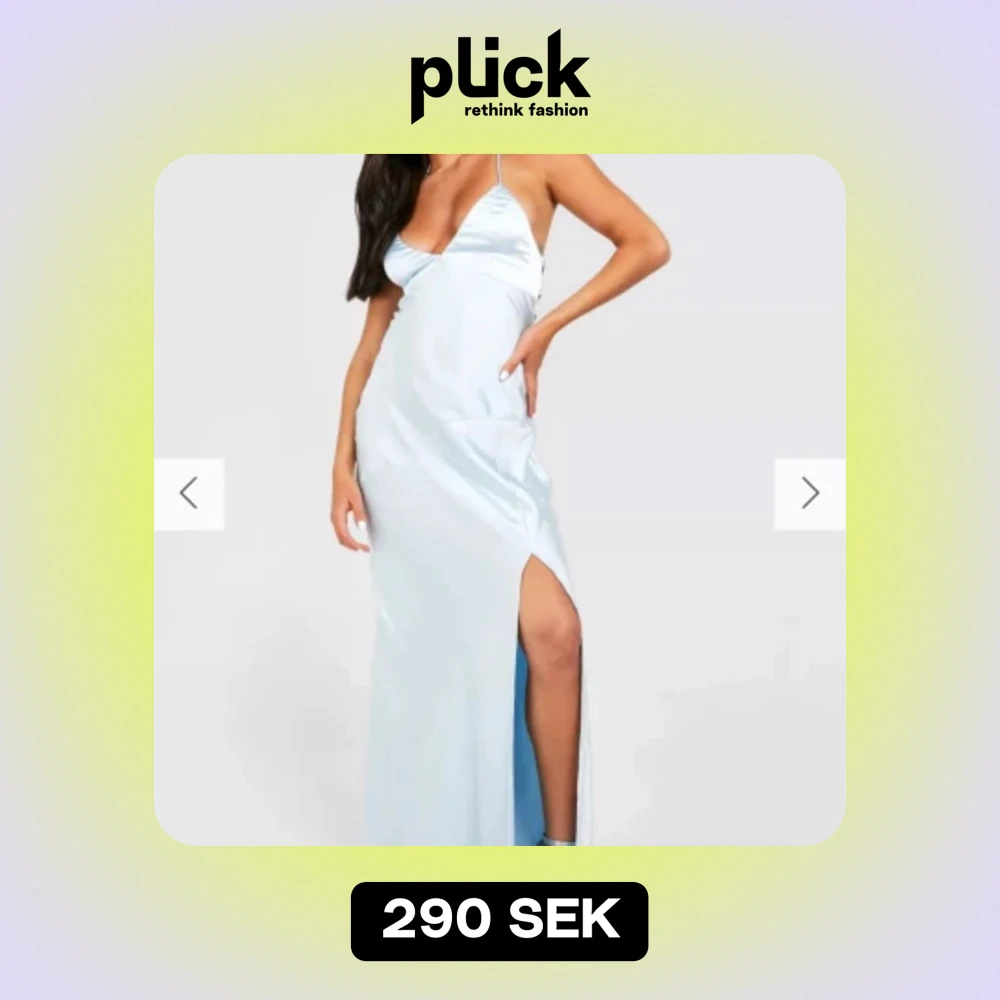 Fin ljusblå satinklänning från bohoo!Den har jättefin korsad rygg🥰har en liten defekt på baksidan, sista bilden.Nypriset är 500, skriv för mer frågor elelr bilder!