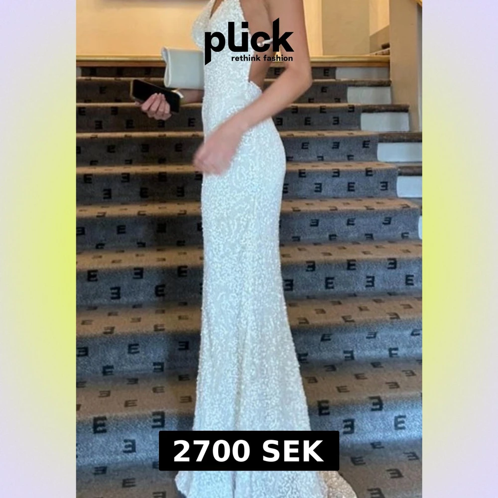 Vit paljett balklänning från dressroom linne’ i storlek 0 vilket motsvarar 32/xxs🤍Nypriset ligger runt 5000kr, det har lossnat några paljetter under bröstet som syns på sjette bilden men inget som är tydligt när den används! Den är upsydd till mig som är 167 men går också att sprätta upp😊