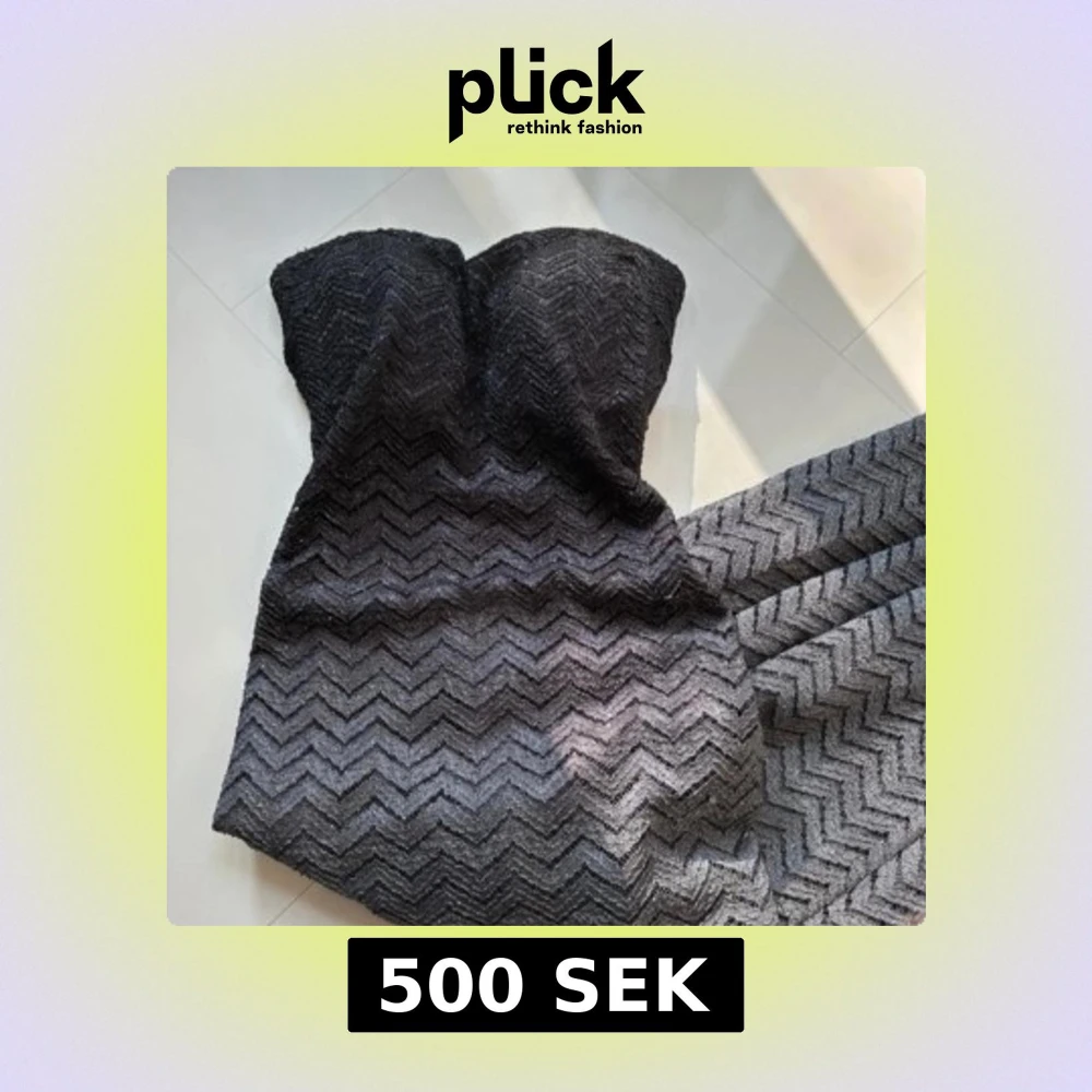 Superfin svart axelbandslös långklänning med zickzackmönster💕