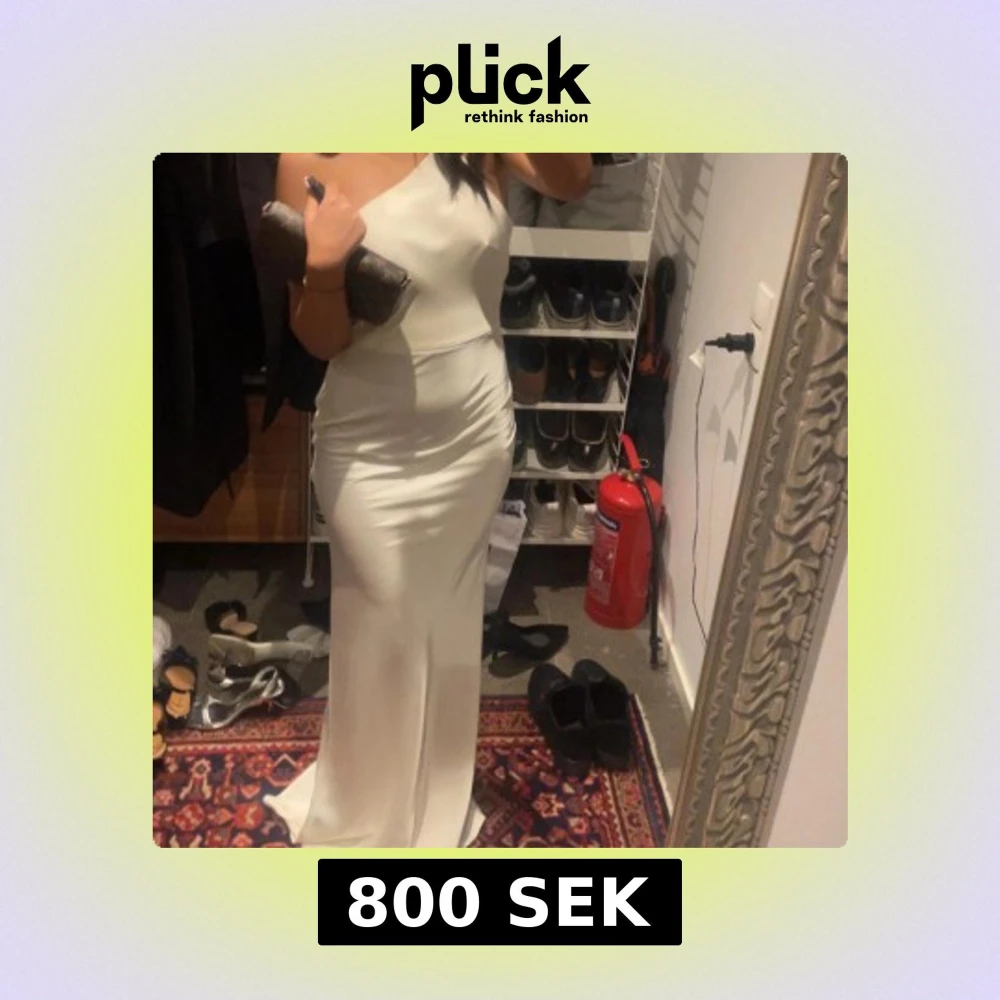 Säljer min bal klänning jag använde en gång. Den är cream vit med guld detalj på ryggen.Är en 165 cm lång i storlek xs