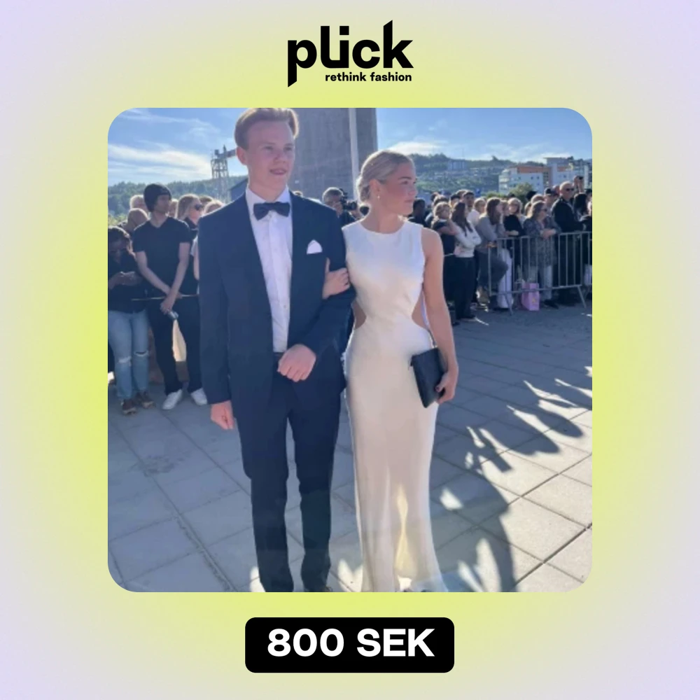 Superfin klänning som jag använde på min bal i år, endats använd 1 gång, den är i silkes material och champagne vit. Öppenrygg men en slits bak. Jag är 164 cm och passade perfekt i längden.