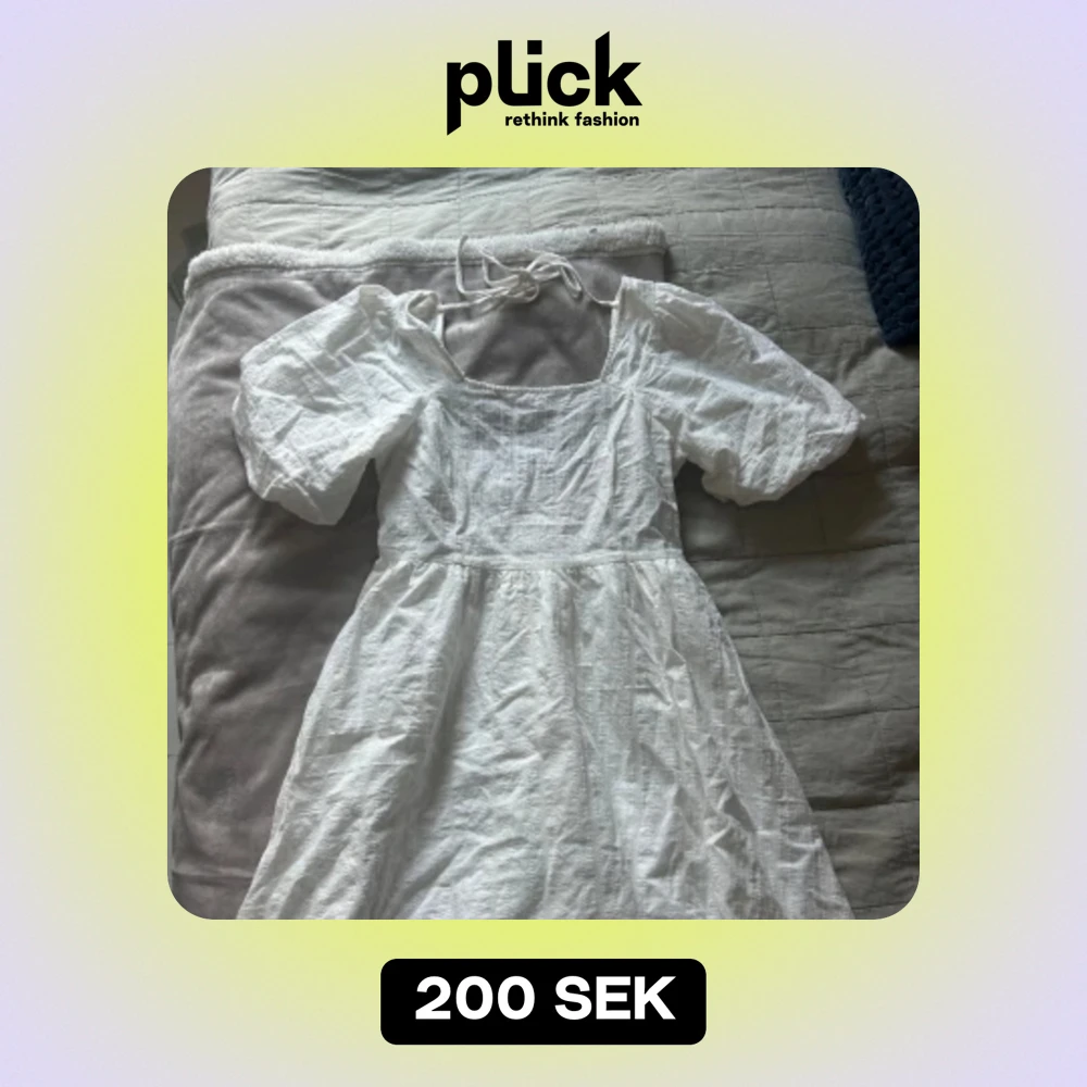 Vit klänning med knytning i ryggen, perfekt till studenten eller liknande! Klänningen är köpt i andrahand och därför är märket osäkert🤍 Endast använd en gång!