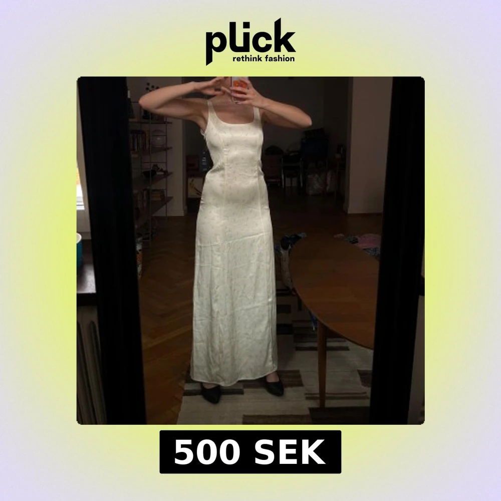 Ny med prislappar kvar, slutsåld på na-kd! Ljusgul långklänning med blommigt mönster och fin snörning i ryggen. Klänningen är i satinliknande material. Perfekt för student och bal!