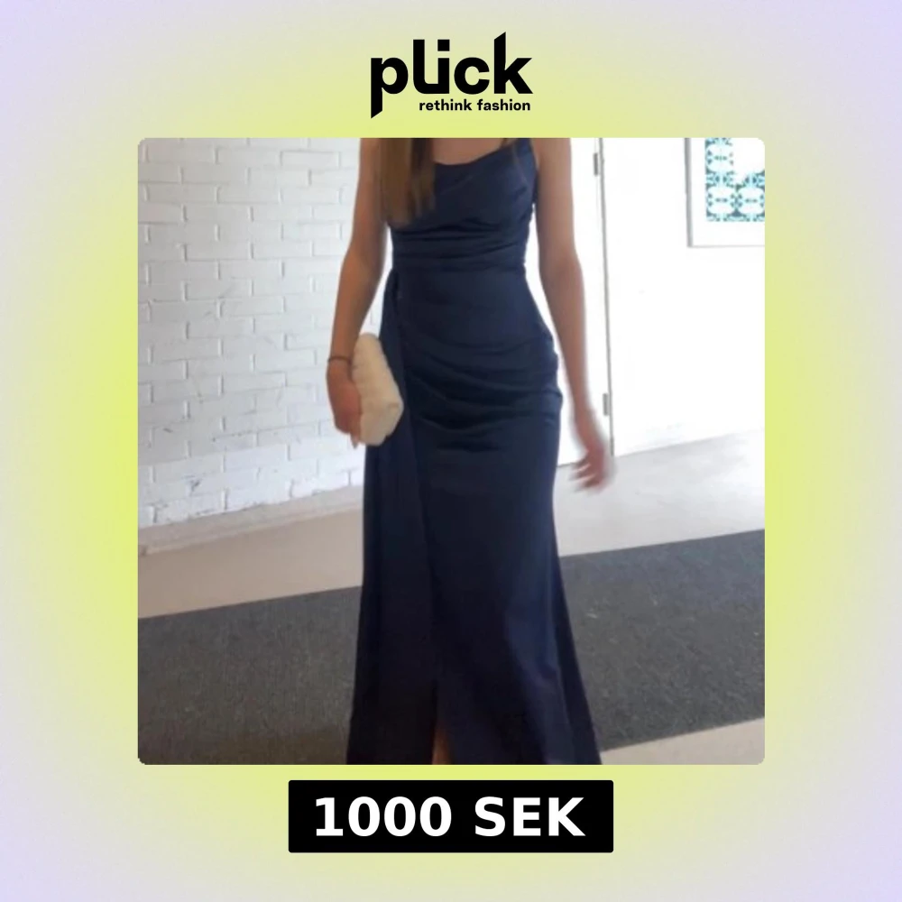 Elegant mörkblå klänning som passar perfekt till speciella tillfällen, tex balen. Klänningen har en slits framtill som ger en wow känsla.