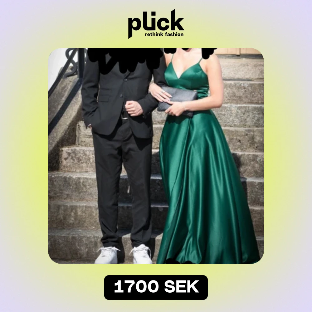 Säljer nu min helt magiska gröna klänning! Kom privat för fler bilder och eventuellt mått. Jag är 1.67 och har 8cm höga klackar på bilderna. Klänningen släpar där bak därav finns det få knappt märkbara märken längst bak. 💚(Köpt för 2100kr)