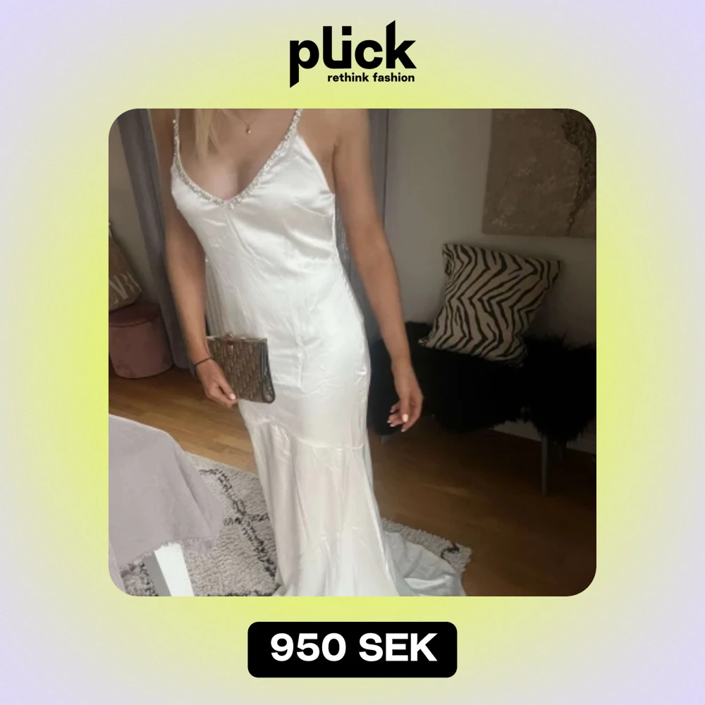 Vit balklänning från fashion nova med strass runt urringingen. Storlek s/m. Aldrig använd, köpt för 1200❣️