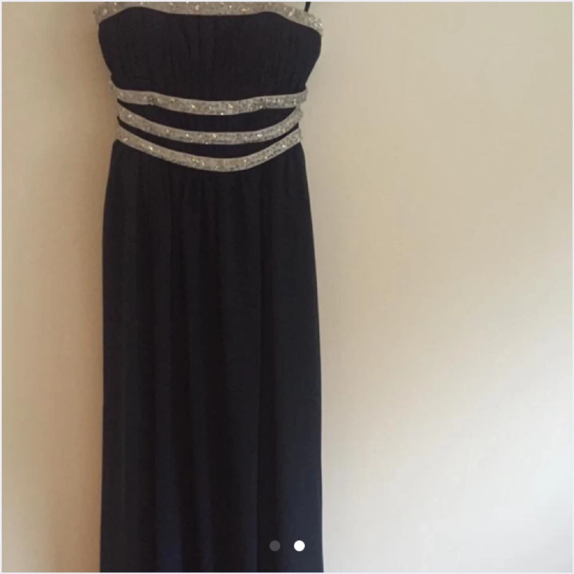 Jättefin mörkblå balklänning med strass runt bysten i nyskick. Använd några timmar. Nypris 3000kr, säljer den för 1500kr. Den är golvlång på mig och jag är 165 cm lång. Fler bilder kan skickas vid intresse!