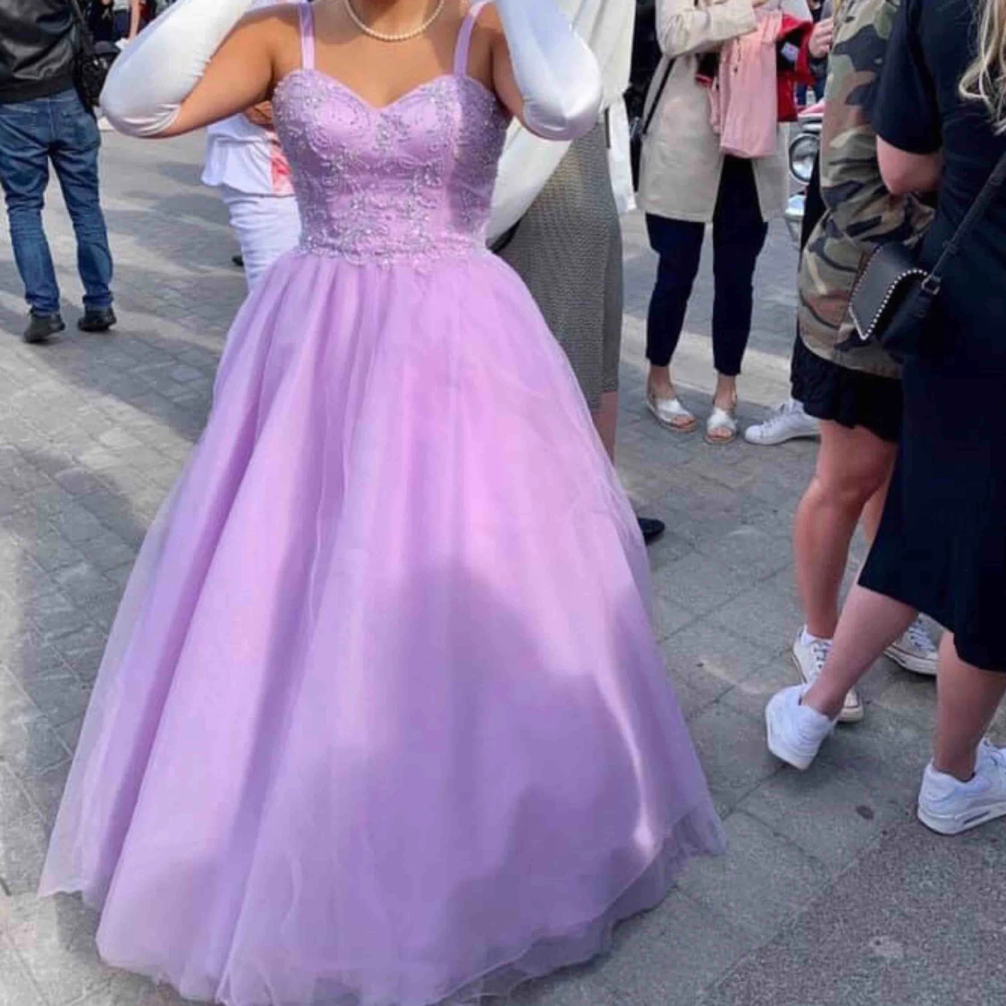 Säljer min balklänning, fin ljuslila. Då ingår underkjol, herrhanskar, damhanskar och klänning