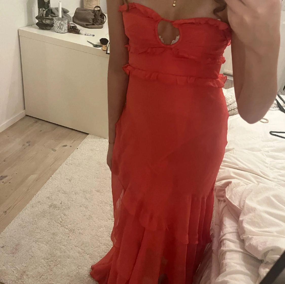 Säljer denna jätte fina röda balklänningen som jag köpte av en tjej här på Plick. Säljer den då den tyvärr inte var så lång på mig som jag hade önskat, klänningen är 133 cm på längden❤️ den är så fin och kommer passa perfekt på någon som är lite kortare än mig, är 173 cm