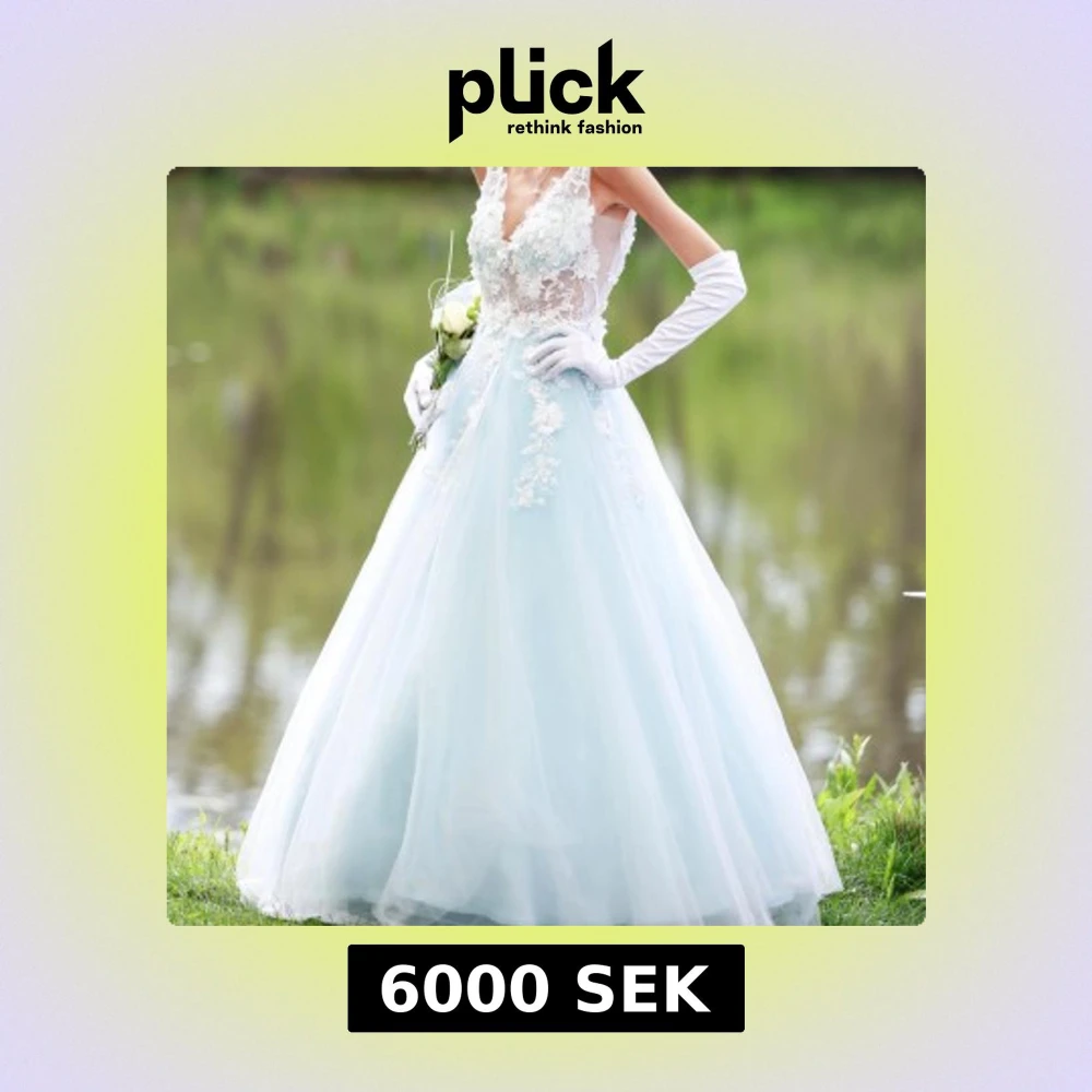 Ljusbkå balklänning använd baler. Äkta balklänning, nedkommer underkjol & handlar och kemtvättas innan försäljning.