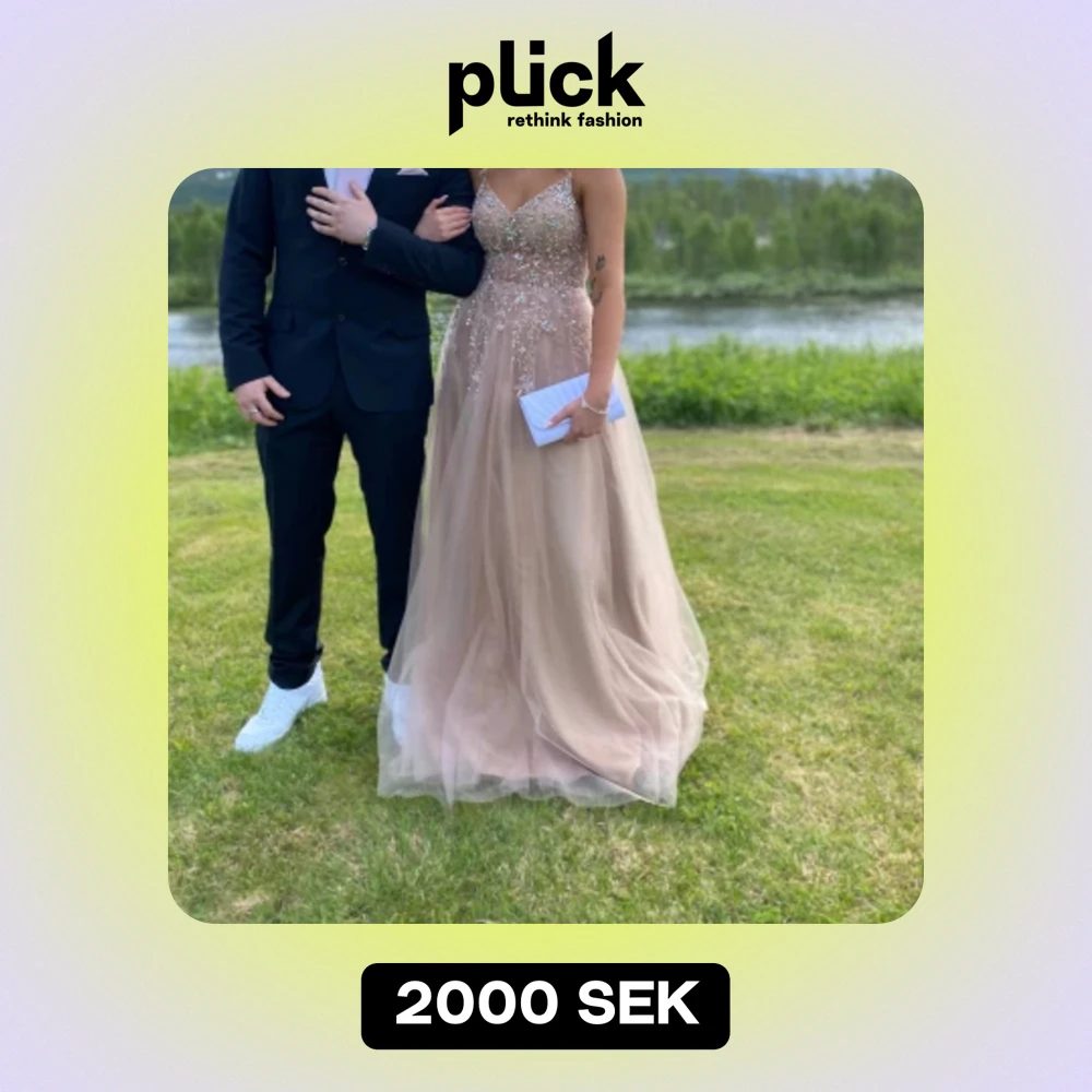 Balklänning från DRESSROOM LINNÉ! Endast använd en gång, små defekter (smått sliten längst ner, skriv för bild) Lite lång på mig som är 167cm. Nypris är 4500kr. Skickar med extra tyg, paljetter samt matchande slips och näsduk.