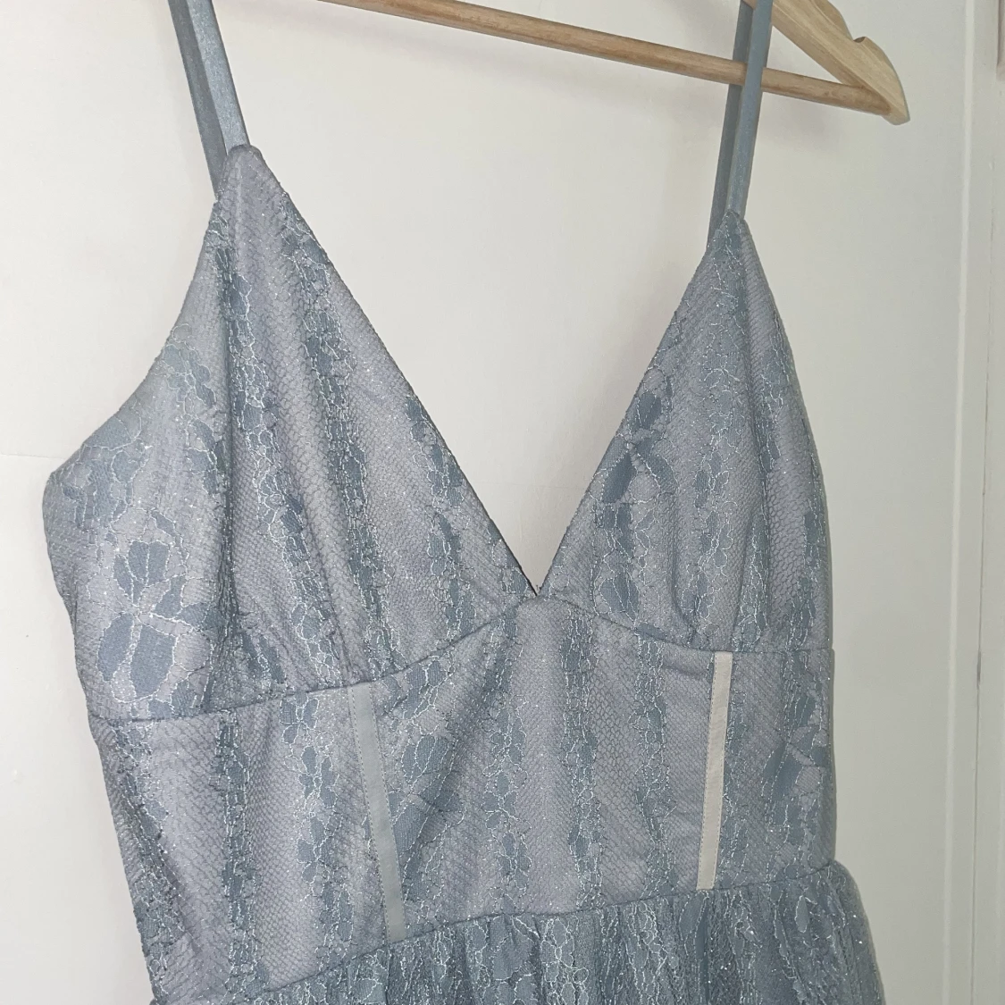 Balklänning använd en gång. Jag är 170cm och klänningen går ner över fötterna, den är uppsydd ungefär 5-10cm så den kan bli längre. Den har justerbara band. Köpt på Asos märke NLY Eve, storlek 36, passar 38 också. Har fler blider, bara att fråga