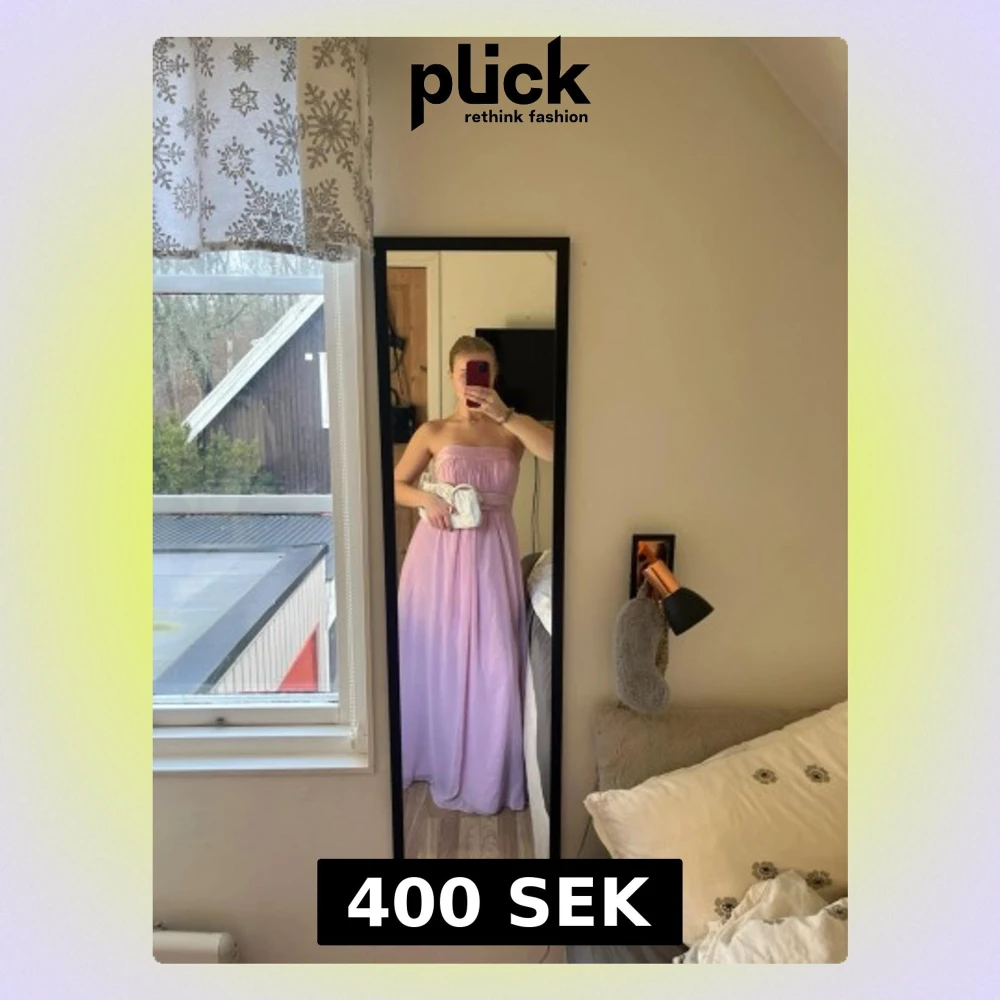 Säljer en elegant ljuslila långklänning med axelbandslös design och markerad midja. Klänningen har ett flytande fall och är perfekt för speciella tillfällen exempelvis bal. 💕💕