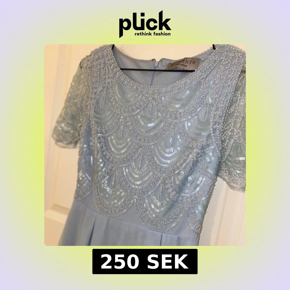 Supersöt ljusblå balklänning med glittriga paljetter. Perfekt till festliga tilfällen. Storlek 34 och mycket bra skick. För bättre bilder, hör av dig!