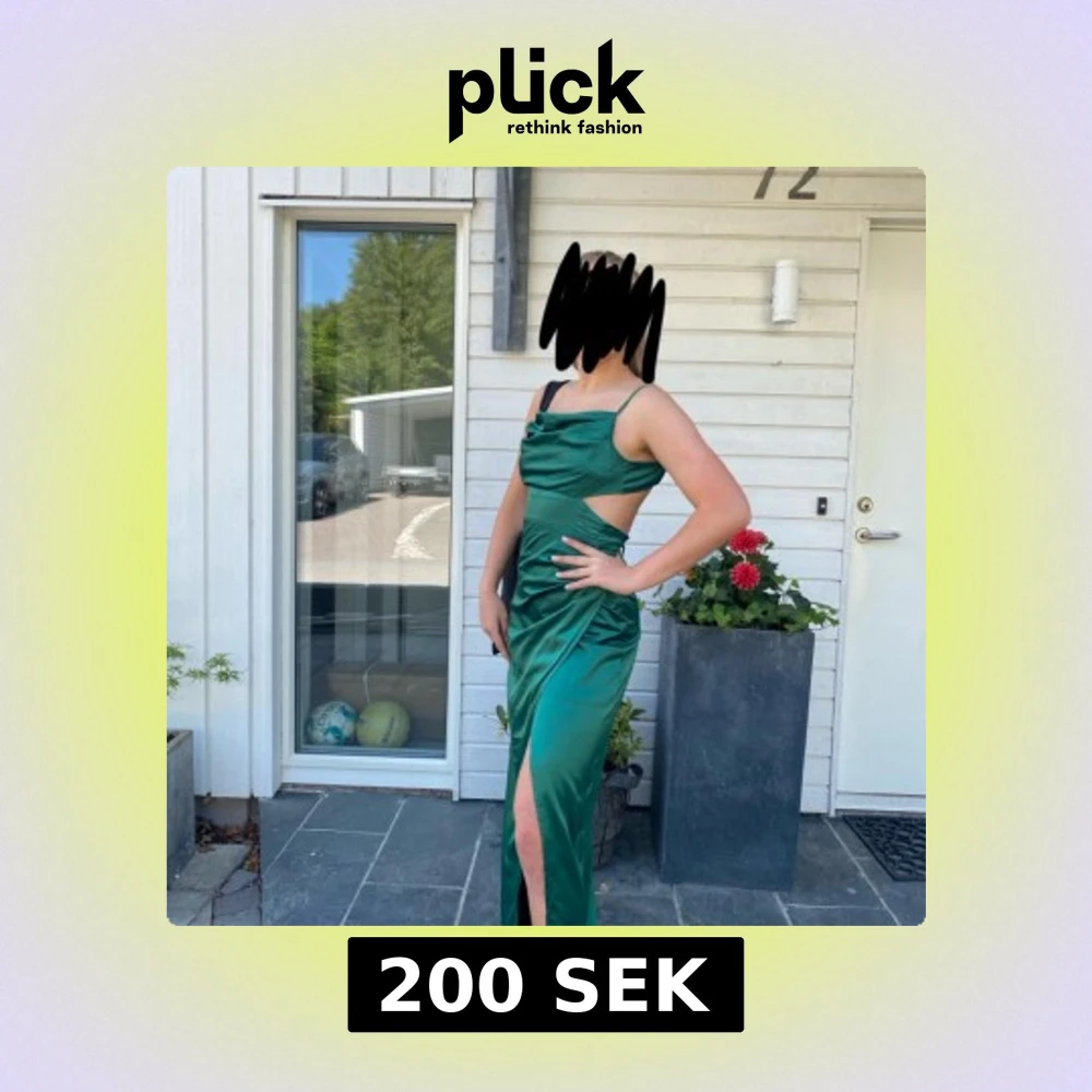Grön satinklänning med öppen rygg från Bubbleroom. Endast använd en gång.