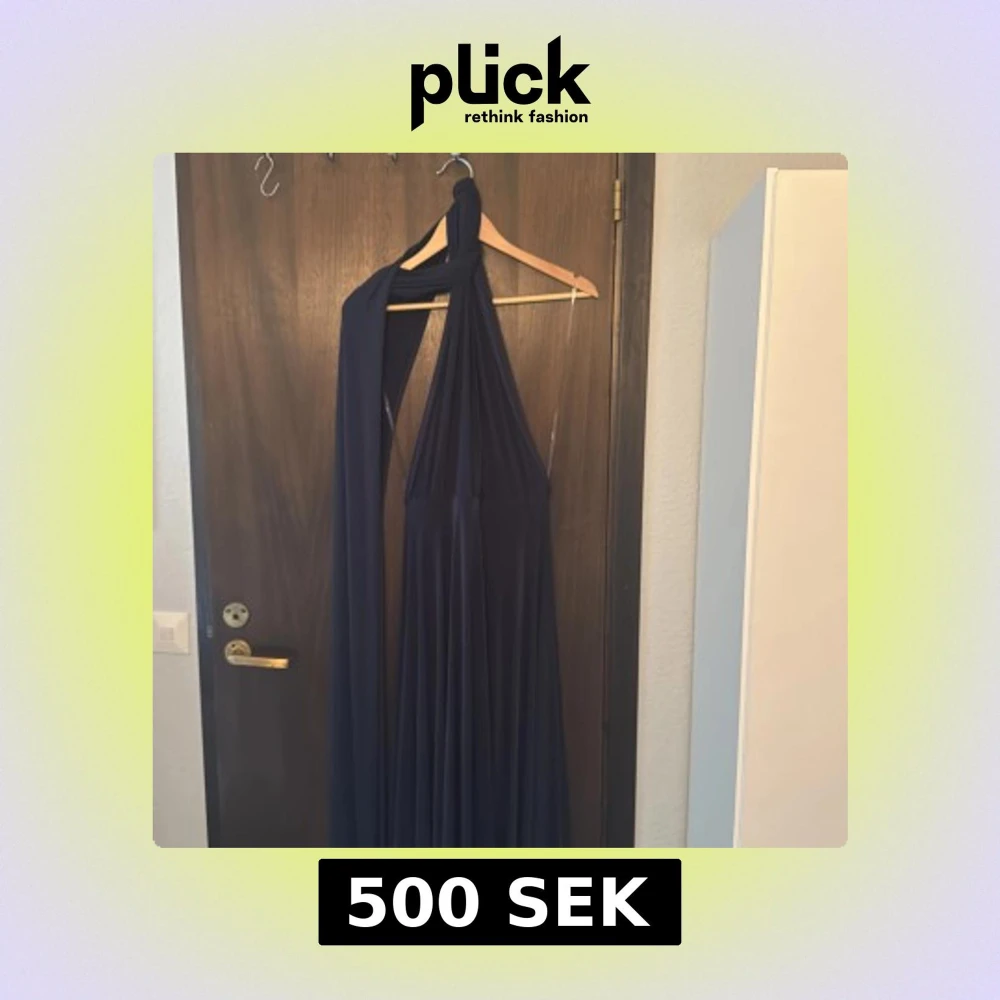 Marinblå balklänning från Bubbleroom, med långa band som man kan knyta på flera olika sätt