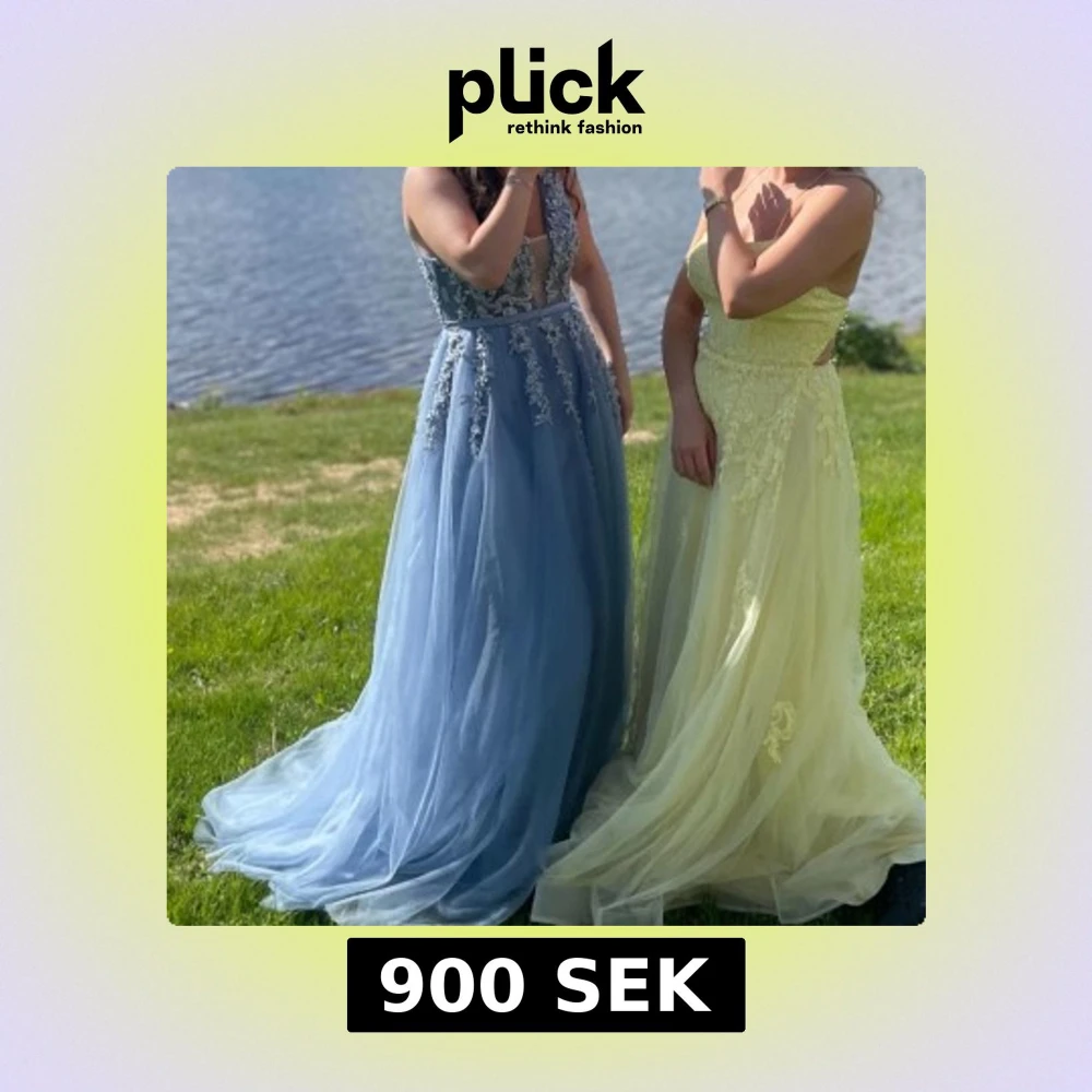 Säljer min fina blåa balklänning med v-ringad urringning och spetsdetaljer. Klänningen har en öppen rygg och ett lite släp 💙kan skicka fler bilder om det önskas ☺️finns även matchande fluga och servett som kan skickas med. Pris går att diskuteras!