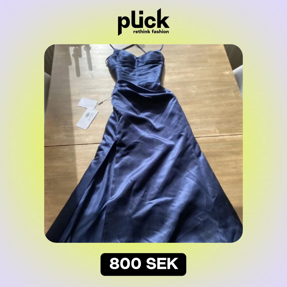 Jättefin balklänning. Den är mer marinblå i verkligheten och har slits och knytning i ryggen. Köpte för ca 1300kr och säljer för 800 men pris kan diskuteras. Storlek 32 men skulle säga XS/S då man kan justera banden i ryggen.