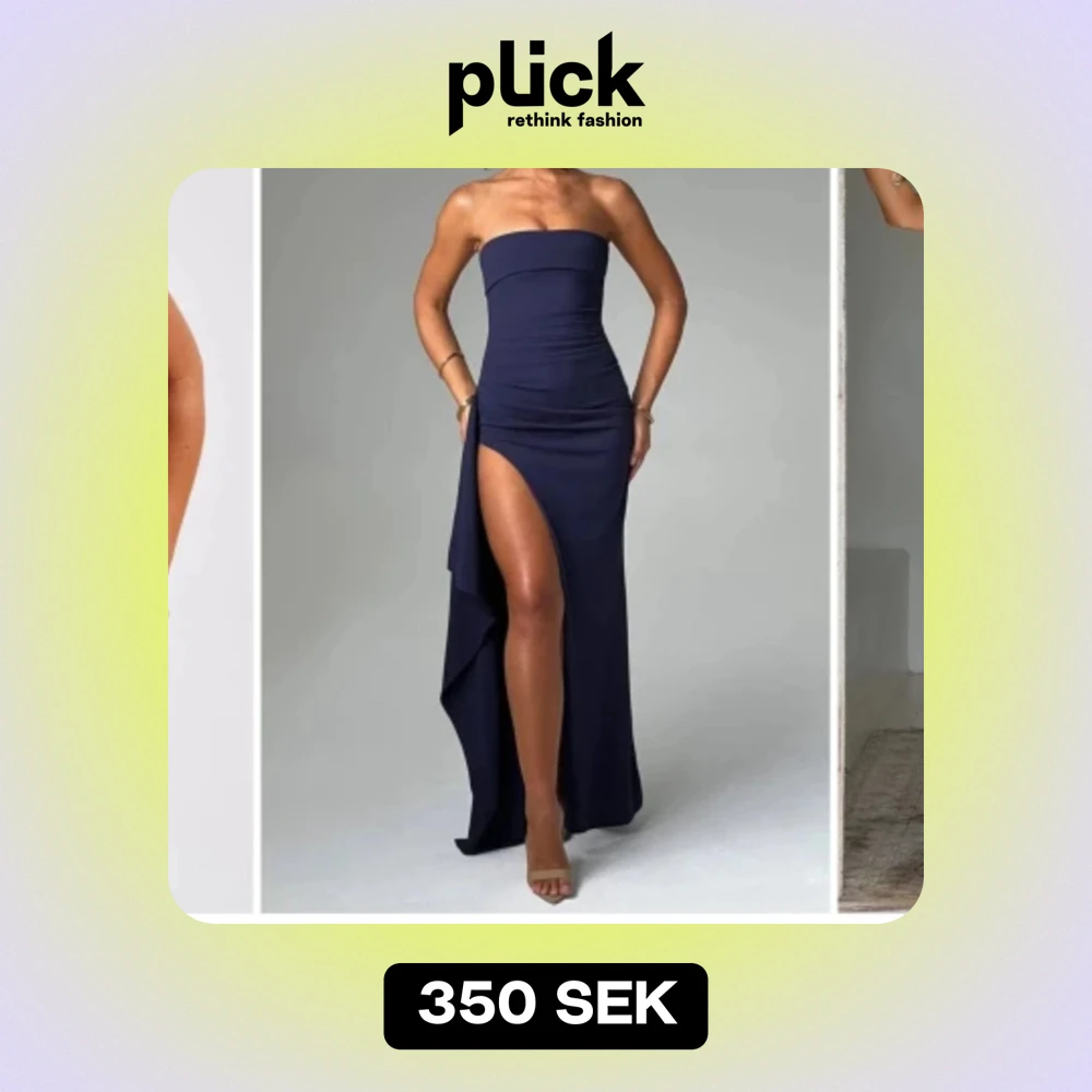Detta är en fin balklänning i färgen marinblå! Endast använd i 3 timmar, och säljs för att jag inte kommer att få någon mer användning av den. Kontakta mig om ni skulle vilja ha mer bilder🥰
