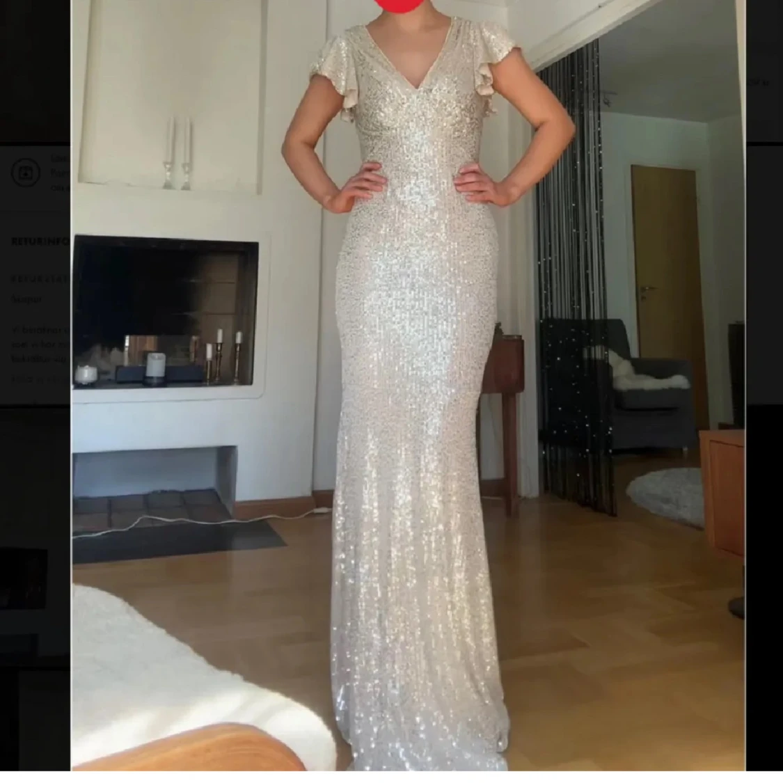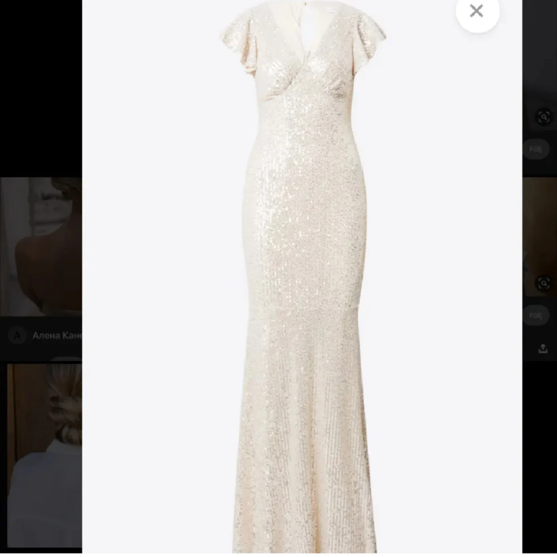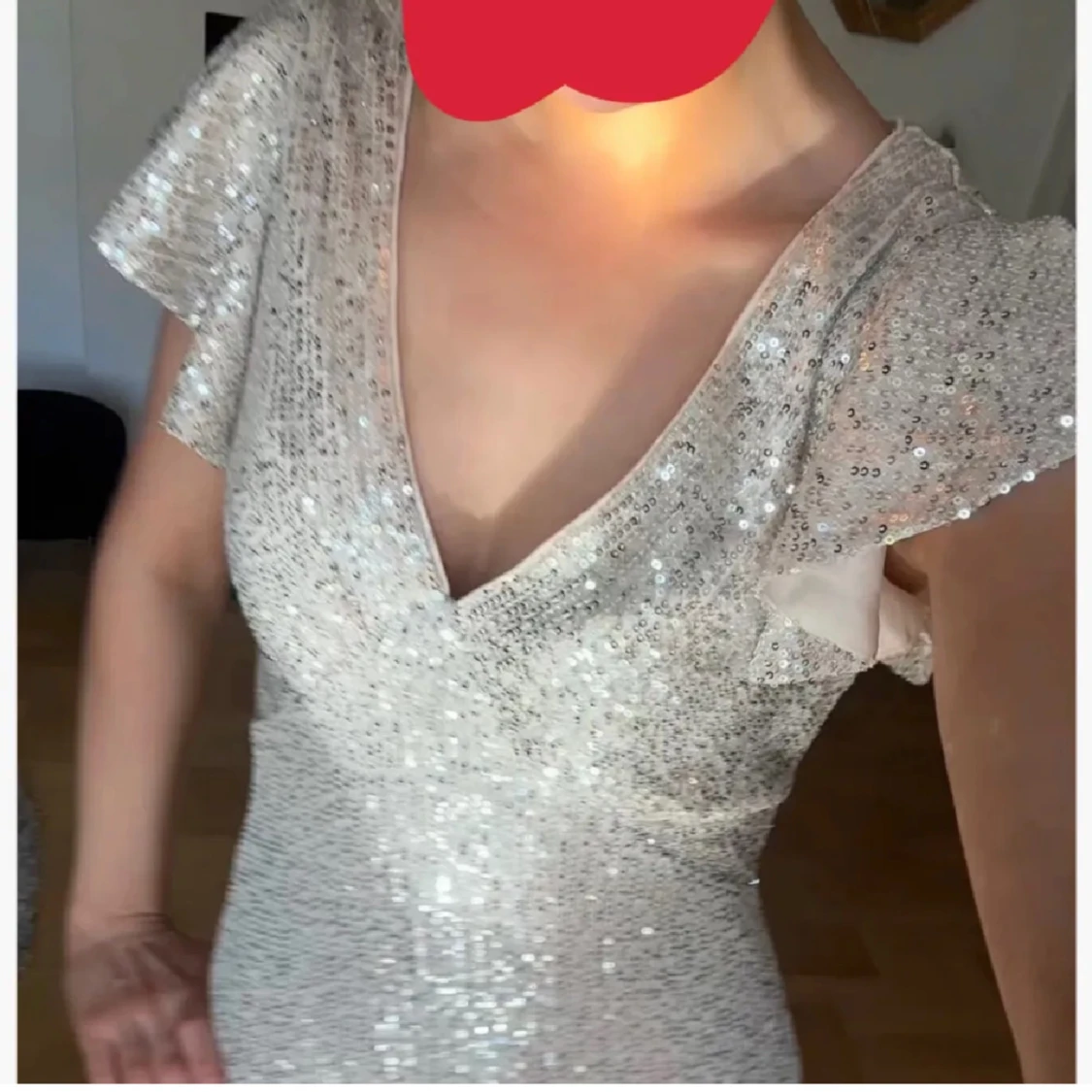 Champagnenfärgad balklänning från coast London med paljetter/glitter, aldrig använd och alla prislappar kvar, storlek 36. Knyts med en rosett i bak