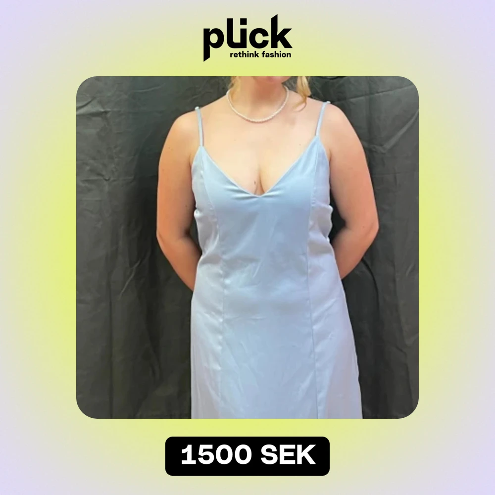 Bra skick, använd en gång. Den är mer blå i verkligheten, och är skrynkligare på bilden. Den har fint knyte i bak som ger lite backless vibe. Stl L
