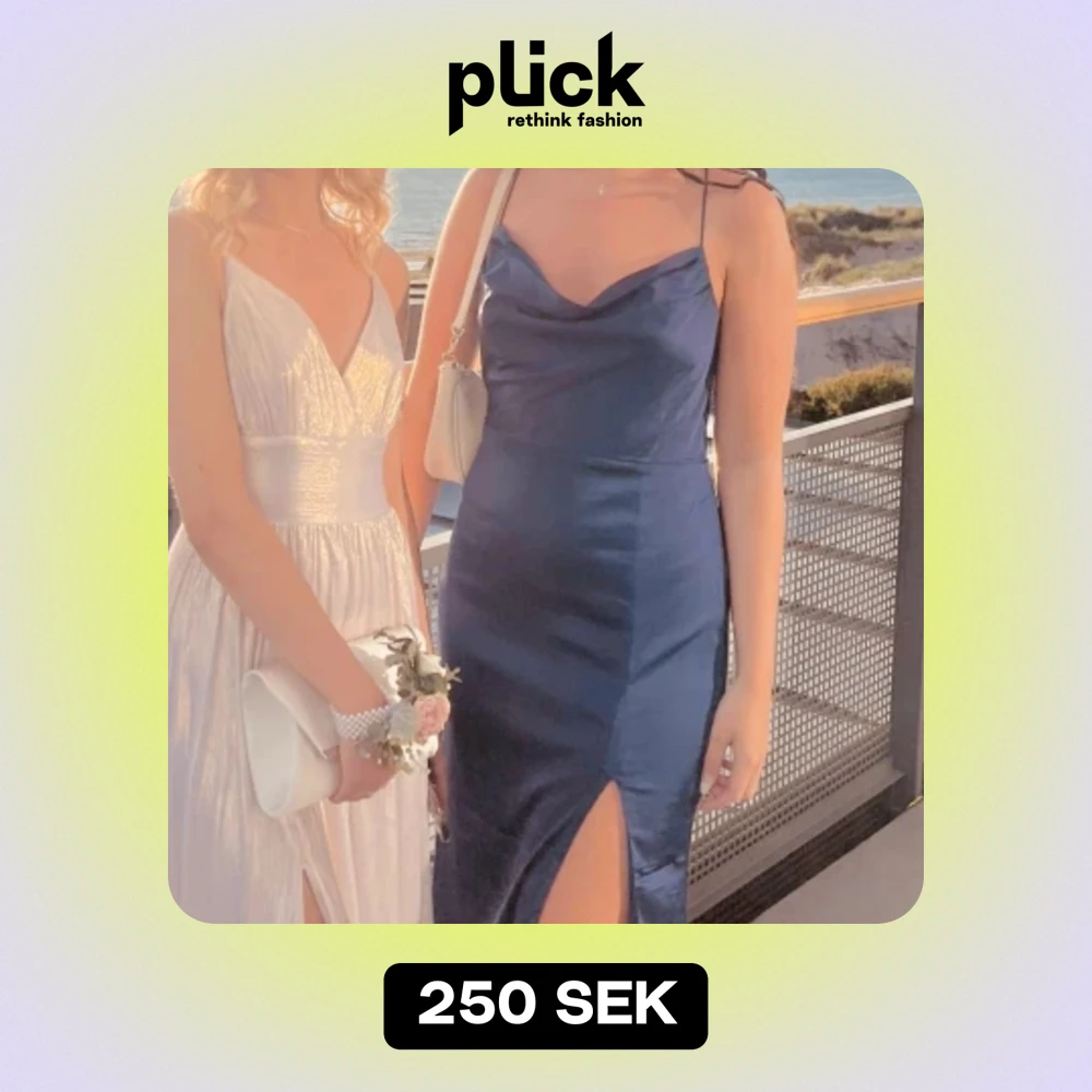 Den mörkblåa. Andra bilden är samma klänning fast i annan färg för att visa baksidan på klänningen. Köpt för 900kr på nelly.