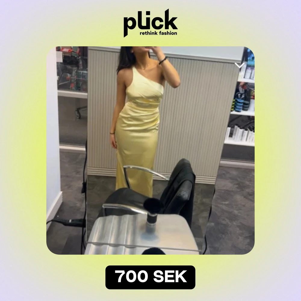 En underbar lång silkesliknande klänning, perfekt till balen eller andra sittningar. Fin ljusgul/ pastellfärg. Inte använd men köpt på Plick!💛. Från bubbelroom (samarbete med Nicole Falciani)❤️ Köpt för 999kr