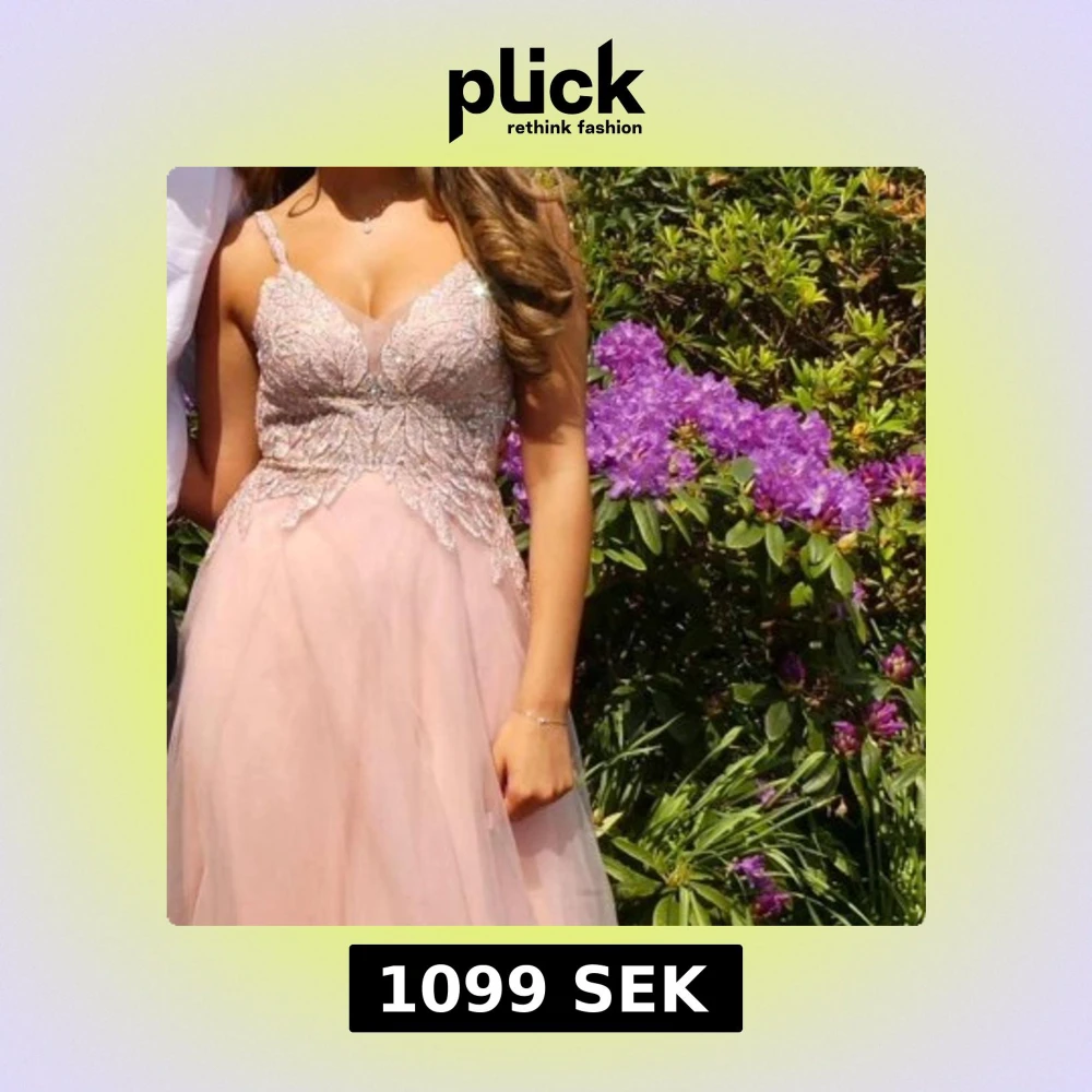 Superfin ljusrosa långklänning med tunna axelband och v-ringning. Överdelen har broderade spetsdetaljer och pärlor som ger en lyxig känsla. Kjolen är i flera lager tunn tyll som faller snyggt. Perfekt för bal eller student!