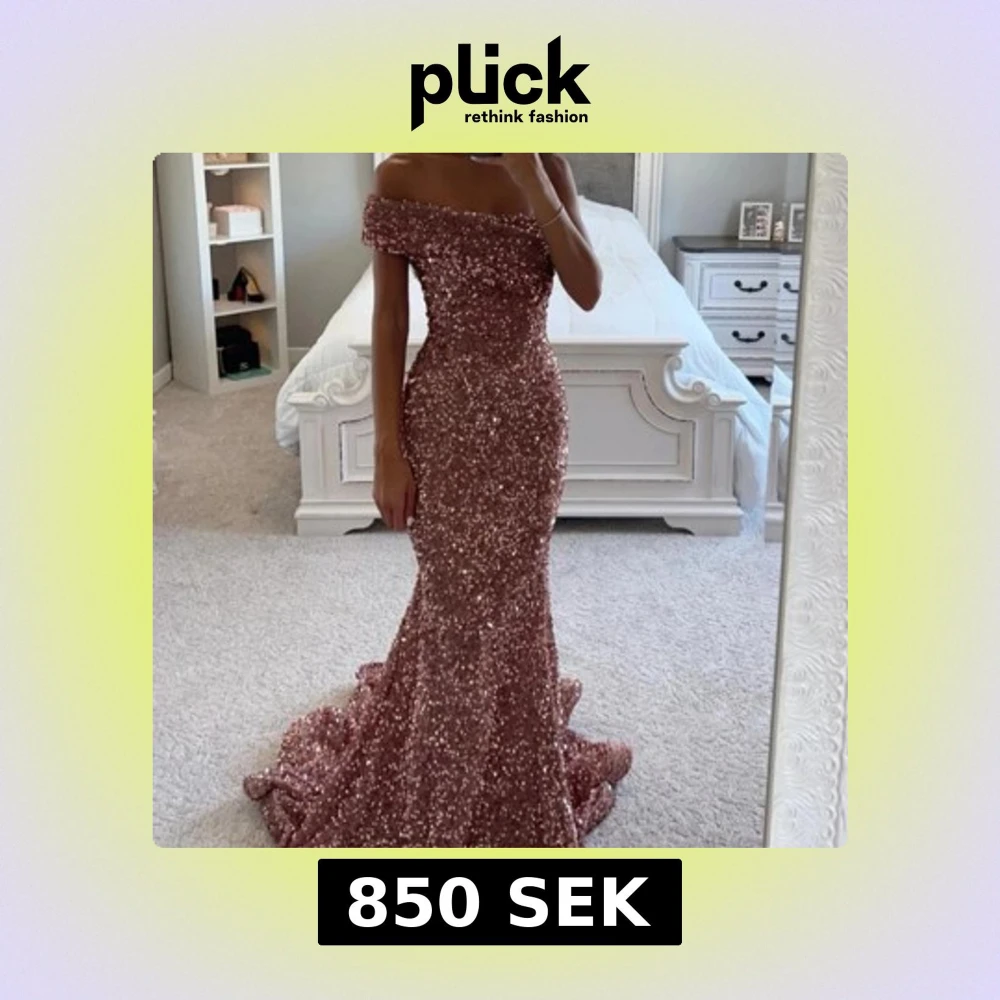 Super snygg balklänning med släp, inga defekter, passar perfekt till bal, fest, bröllop osv. Är 170cm och den är flera decimeter lång i släpet. Nypris ca 2000kr