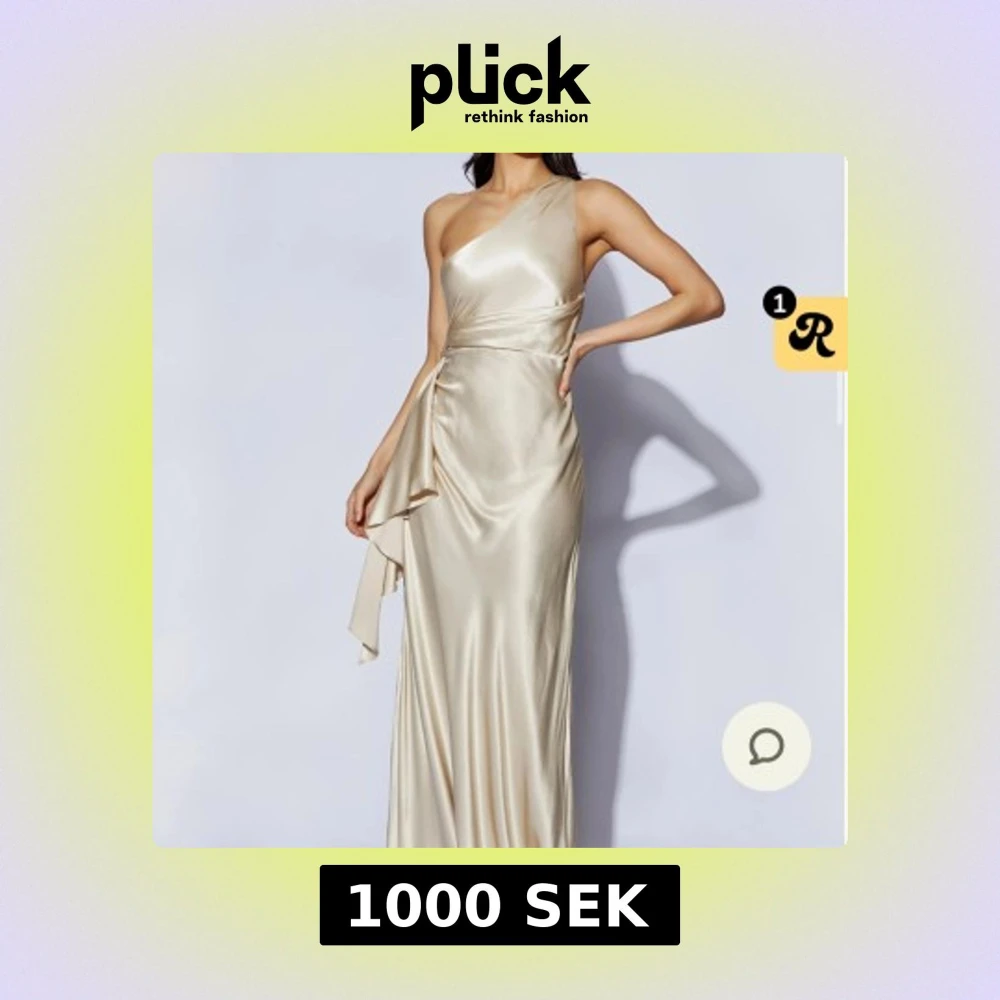 Elegant champagnefärgad långklänning i siden med en stilren oneshoulder-design. Den är från Meshki, andvänd en gång vid ett tillfälle. Klänningen har en vacker omlott-detalj i midjan som ger en smickrande passform. Perfekt för balen!💓💓💓(lång i längden)