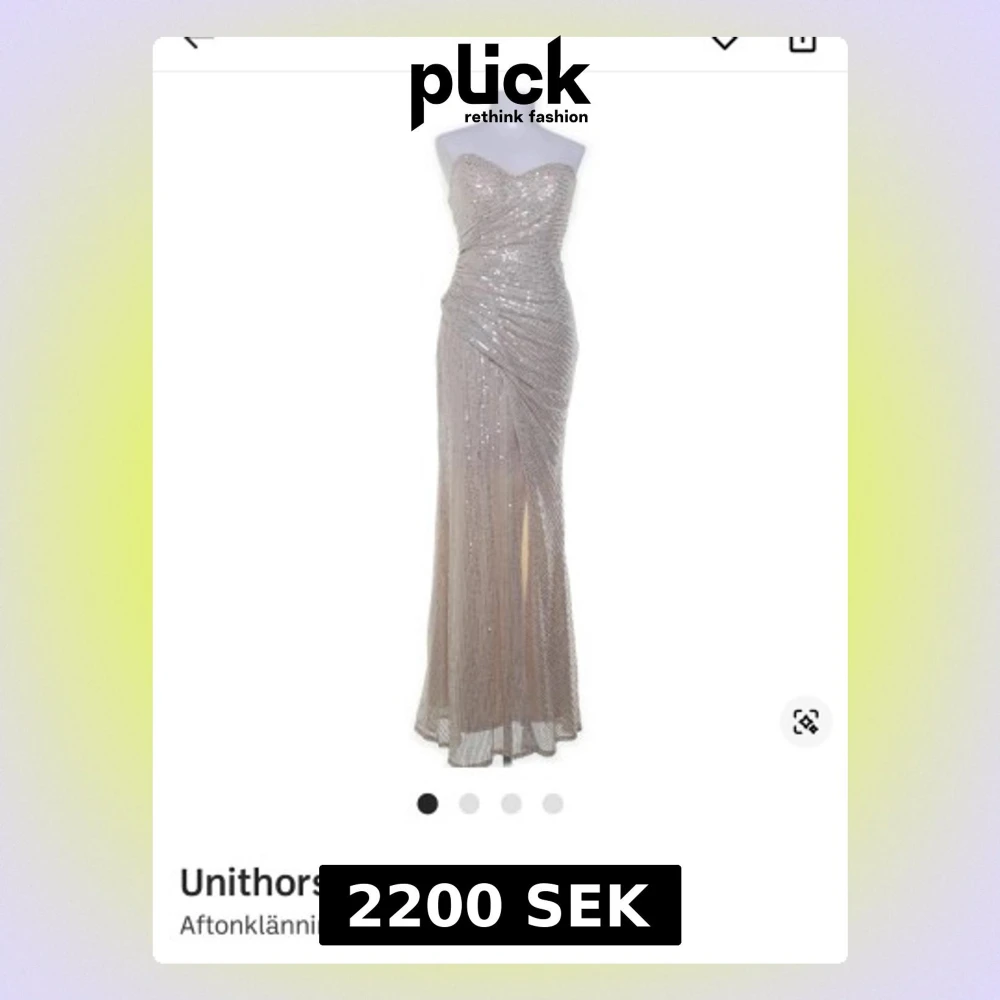 Supersnygg glittrig långklänning från Unithorse i en ljus champagnefärg. Klänningen är axelbandslös med omlott-detalj framtill och har en slits som ger extra edge. Perfekt för dig som vill sticka ut på bal eller fest.