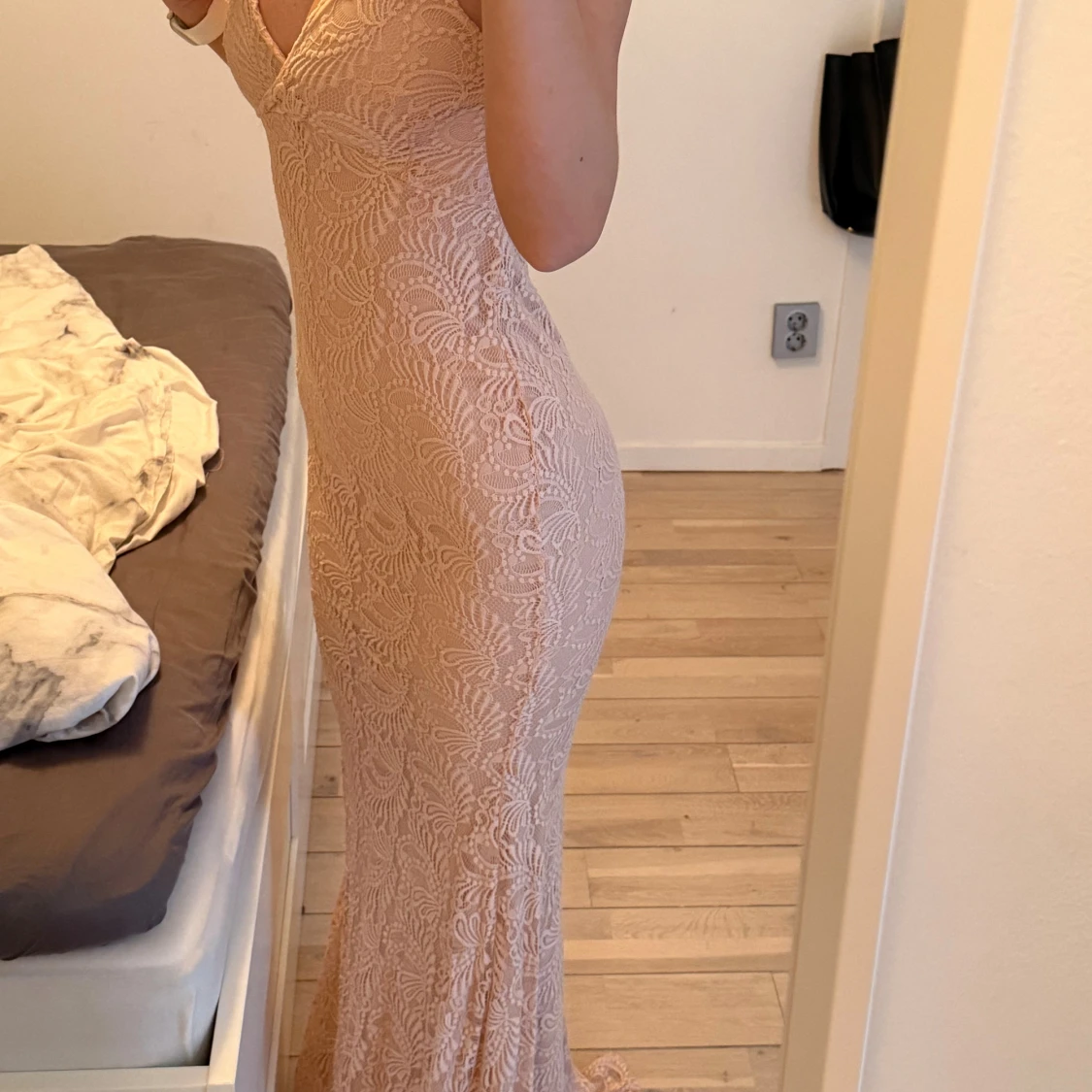 Säljer en balklänning. Endast använd en gång. Klänningen har ärmlös design och markerar midjan på ett smickrande sätt. Perfekt för dig som vill ha en elegant look med romantiska detaljer.