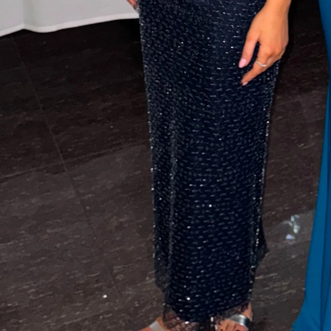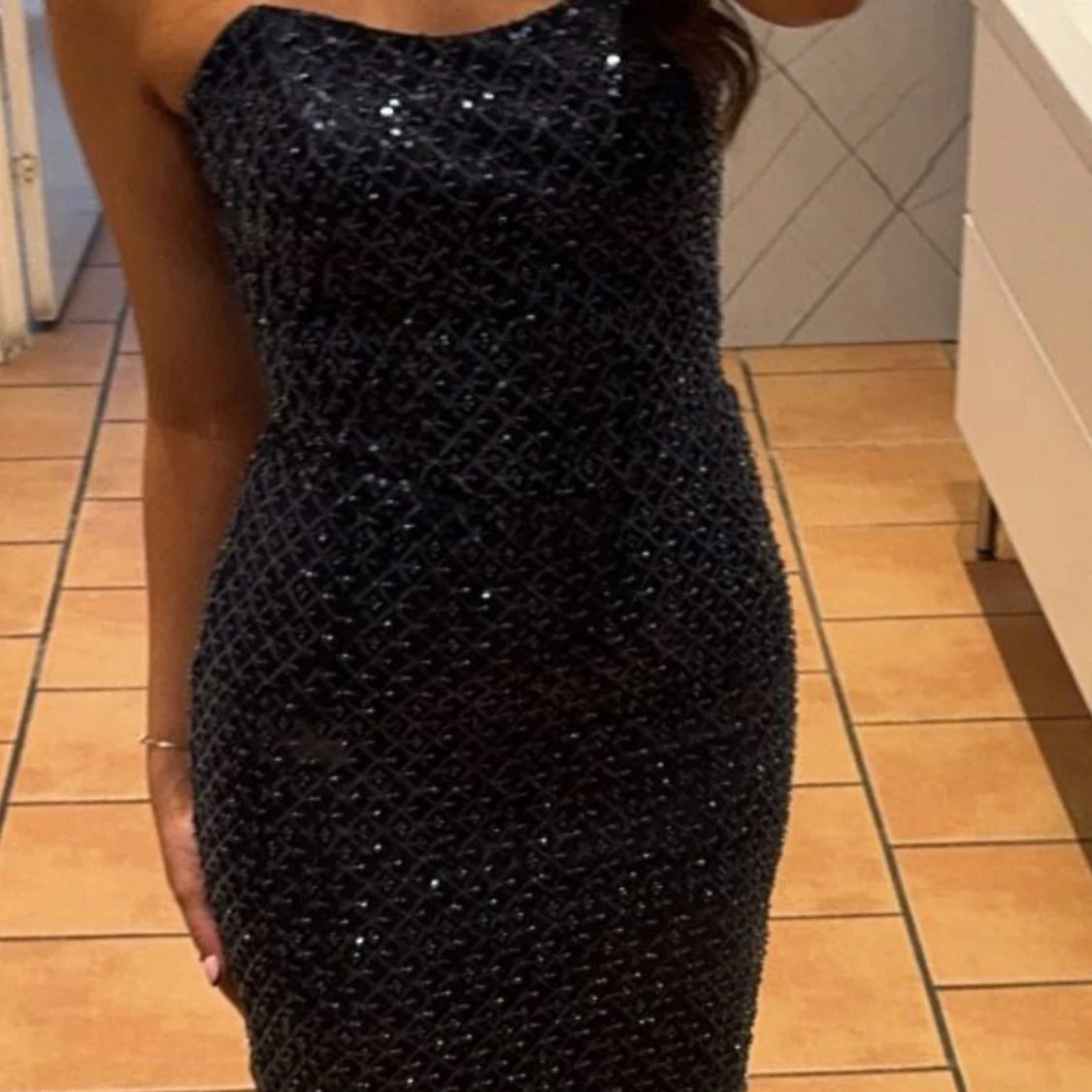 Klänning i storlek 34, använd en gång och har pärlor. Prefekt till fest eller bal