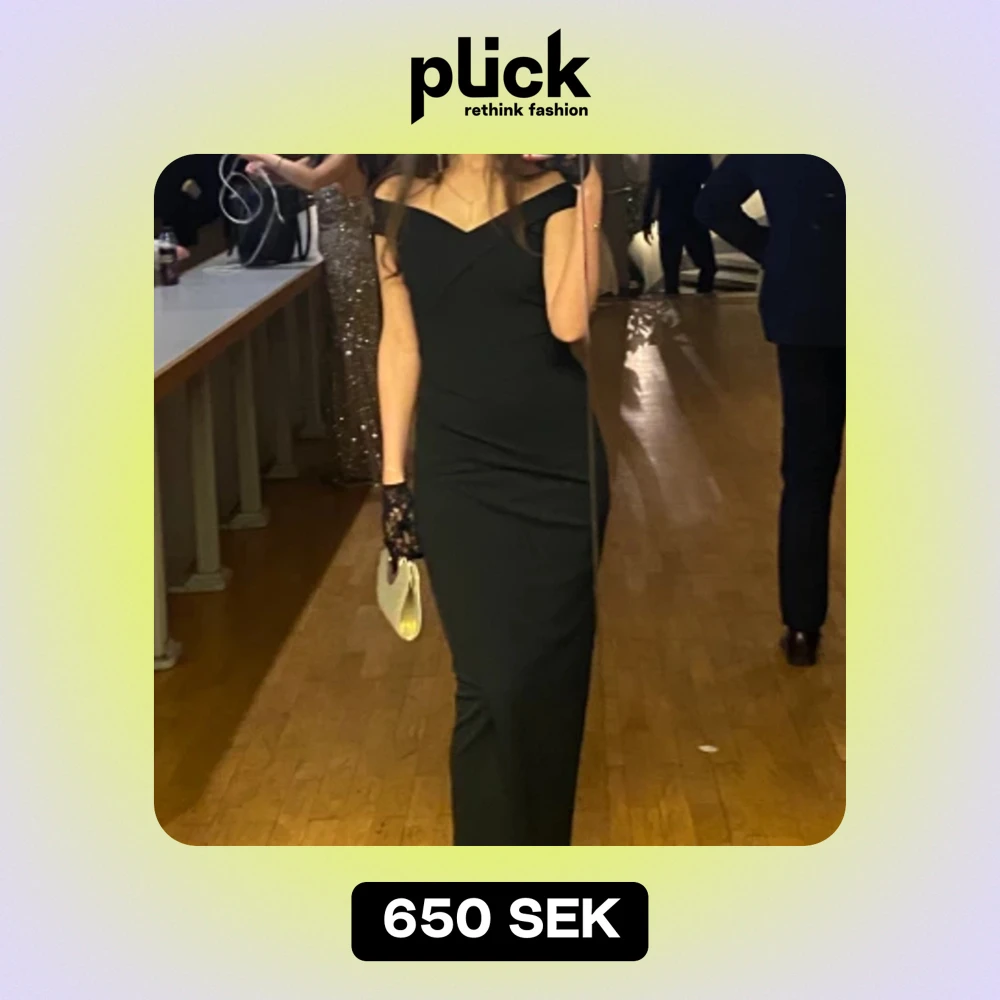 En elegant svart balklänning som är offshoulder. Går att ha till bal, som bröllopsgäst och andra festligheter. Har endast använts en gång till balen men den är alldeles ny.