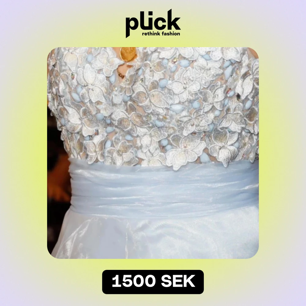 Ljusblå, fin balklänning som endast är använd 1 gång. Storlek 38.