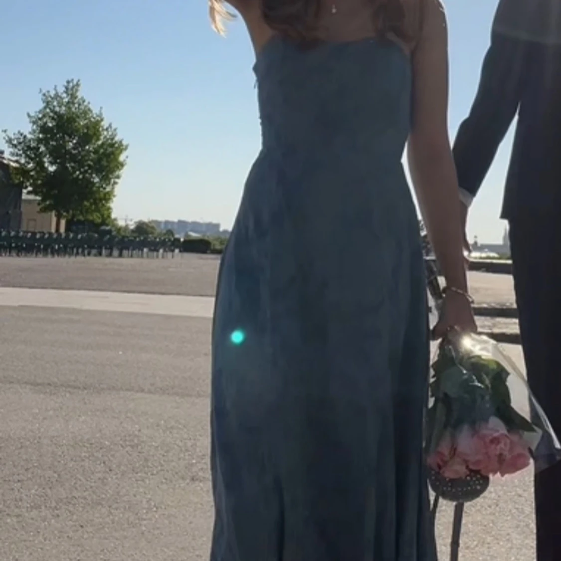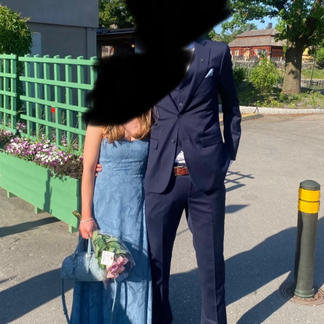 säljer nu min balklänning, klänningen är uppsydd så att den passar någon som är 160cm. Använd endast en gång!
