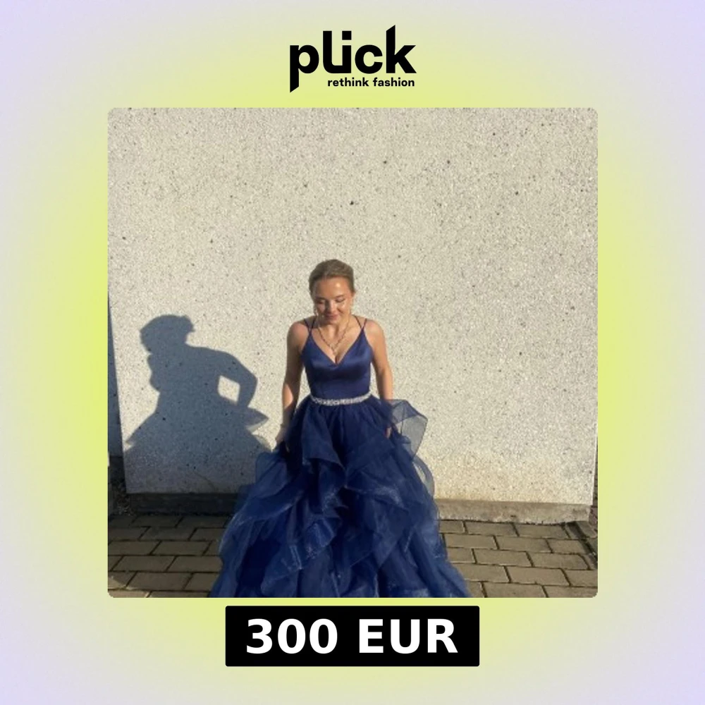 Säljer min mörkblåa balklänning med tunna axelband, v-ringning och glittrigt bälte i midjan. Omsydd så att den passar mig som är 155 cm, men kan förlängas tillbaka till originella längden! Storlek 30, kan justeras med snörena i ryggen. Använd några gånger men i bra skick💕💕pris kan förstås diskuteras
