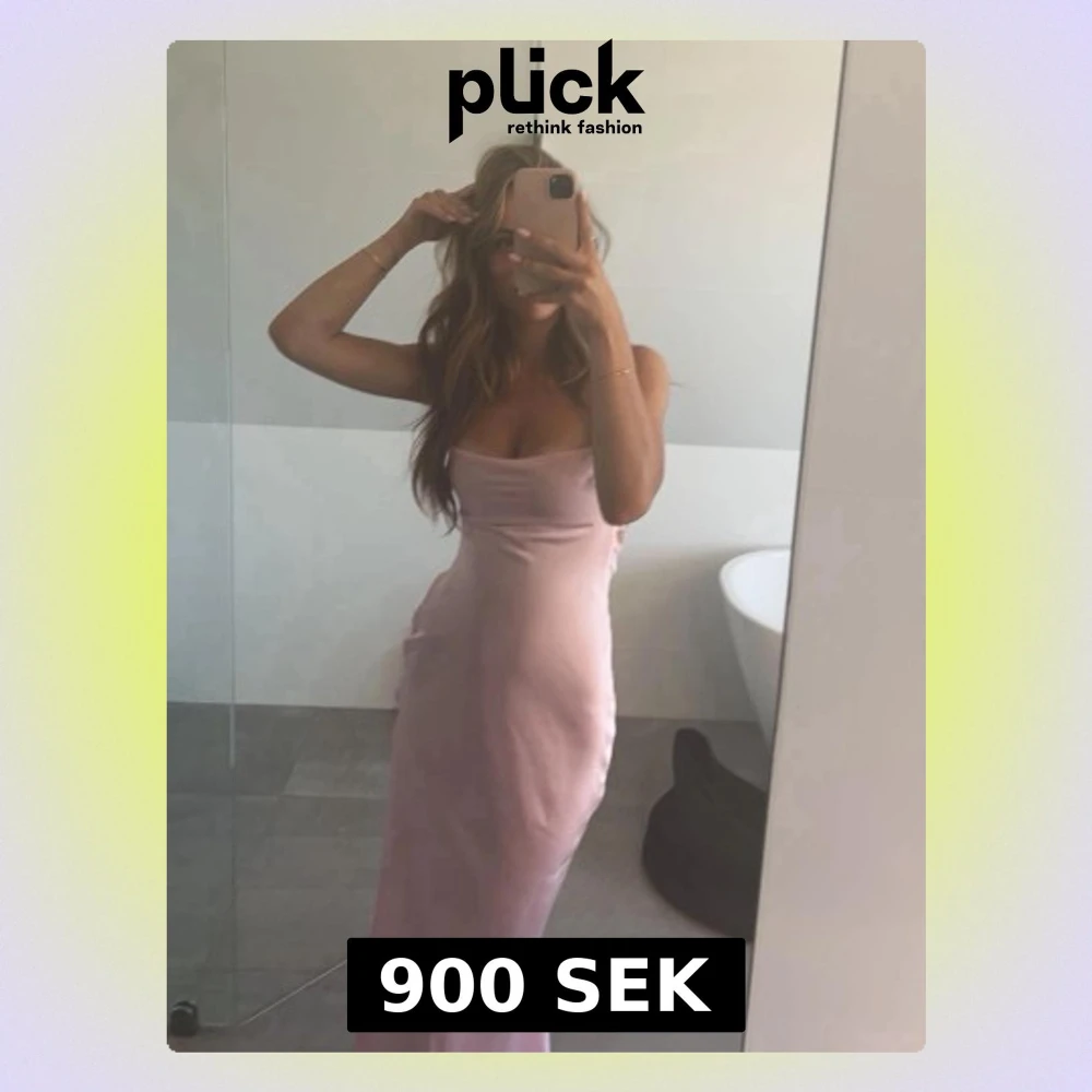 Säljer en ljusrosa balklänning med hög slits och tunna axelband🩷