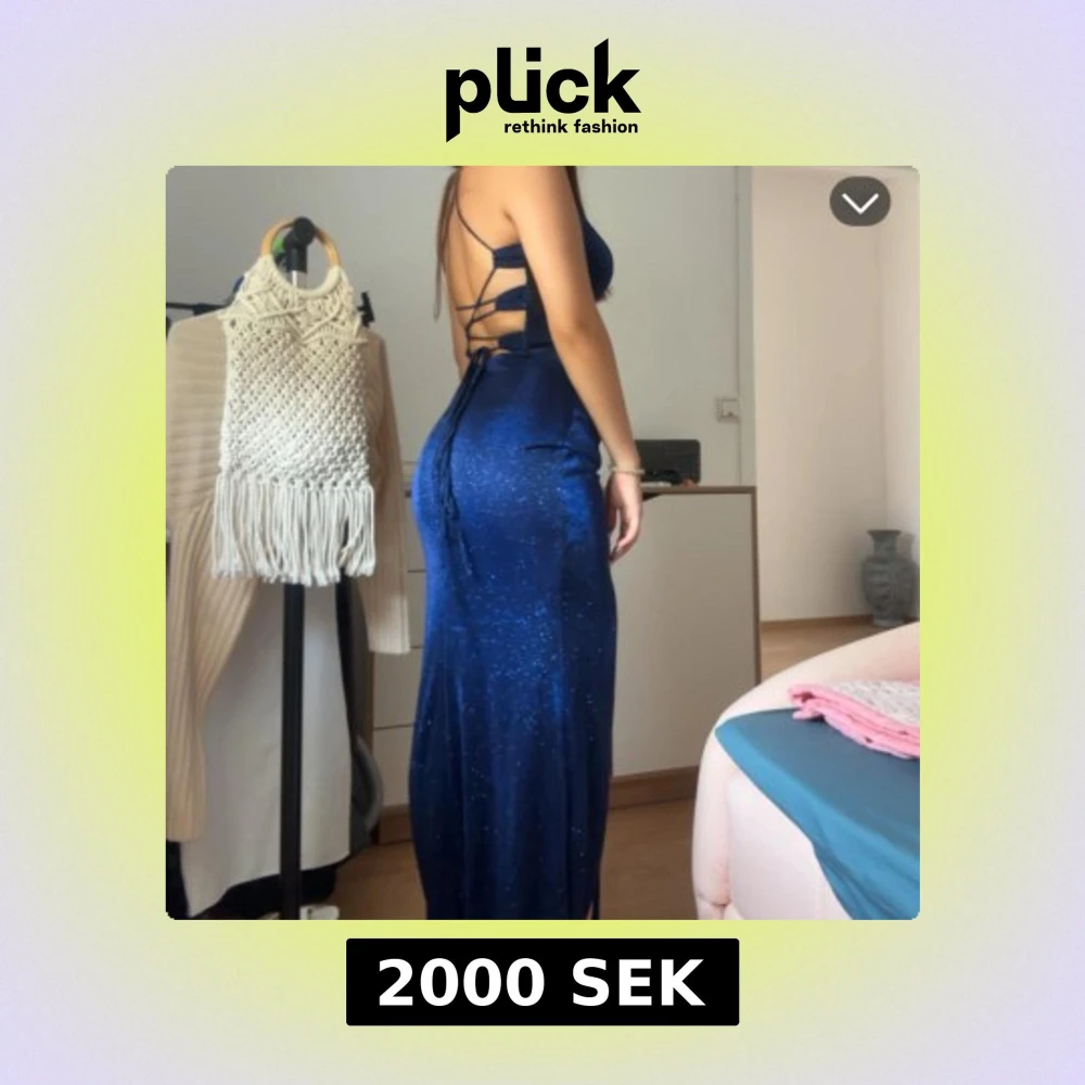 Elegant blå balklänning med glittrande detaljer och en djärv slits. Klänningen har smala axelband och en öppen rygg med snörning för en perfekt passform. Perfekt för speciella tillfällen som balen. Har även kortat klänningen med ungefär 5cm men den är fortfarande ganska lång. Säljer då den inte kommer till användning längre (använd en gång). Nypris: 3 000 kr. Pris kan diskuteras.