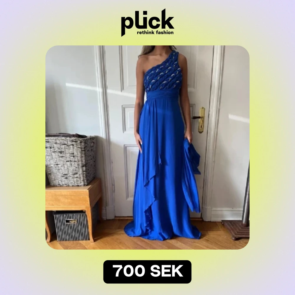 En väldigt fin bal/aftonklänning i electric blue!💙 Överdelen har inflätat strass och en matchande sjal medföljer💙 Köpt här på plick, har endast använts två gånger av förra ägaren💙 Väldigt fint skick!