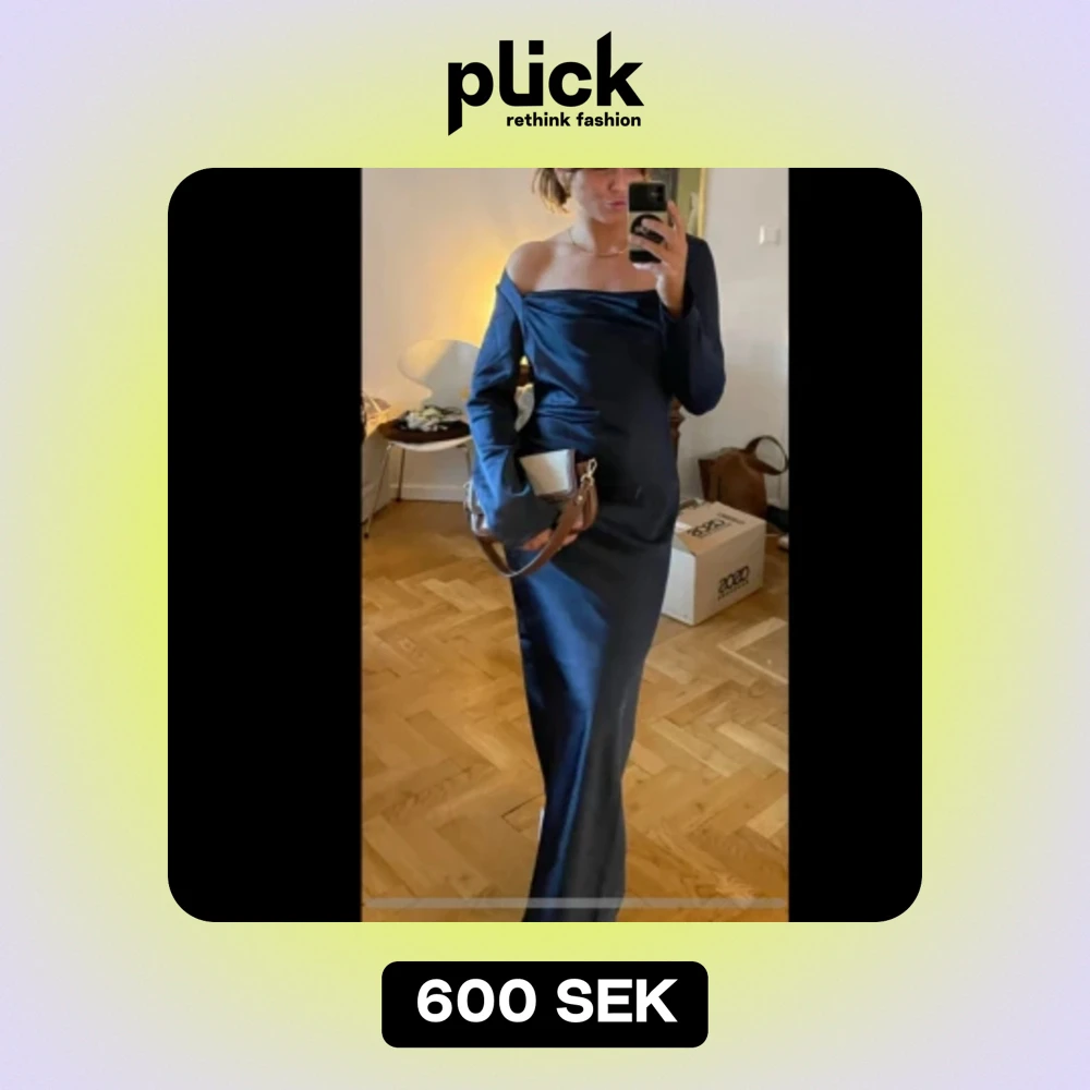 Fantastisk satinklänning i strl S Djup i ryggen, golvlång, med fin rosett i bak. Tjockare satintyg, bra kvalitet. Använd en gång.