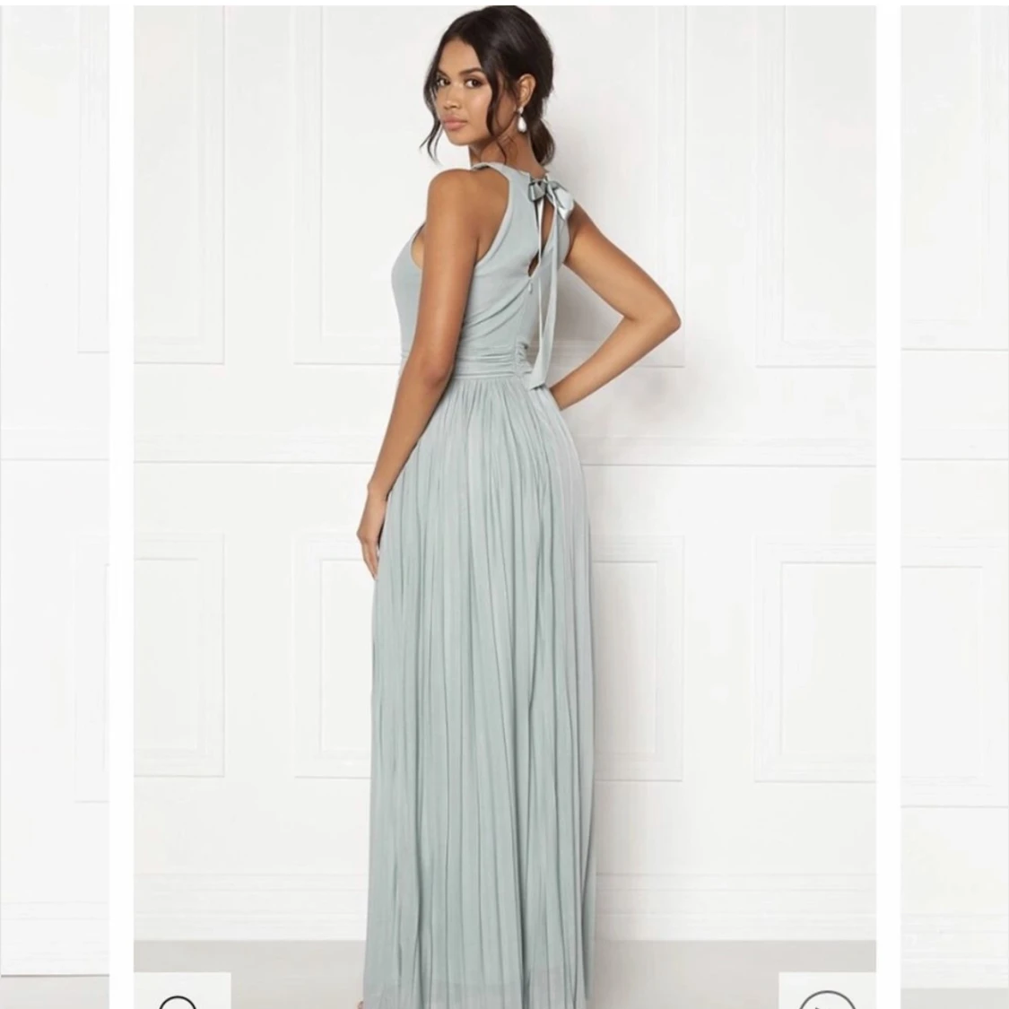 Säljer min fina balklänning från 2020. Använd en gång på min bal. Inga fläckar eller defekter utan var väldigt rädd om den. Klänningen är lång och passar mig dom är 174. Dragkedja och knytning i ryggen, bh behövdes inte får mig som har D/C kupa.